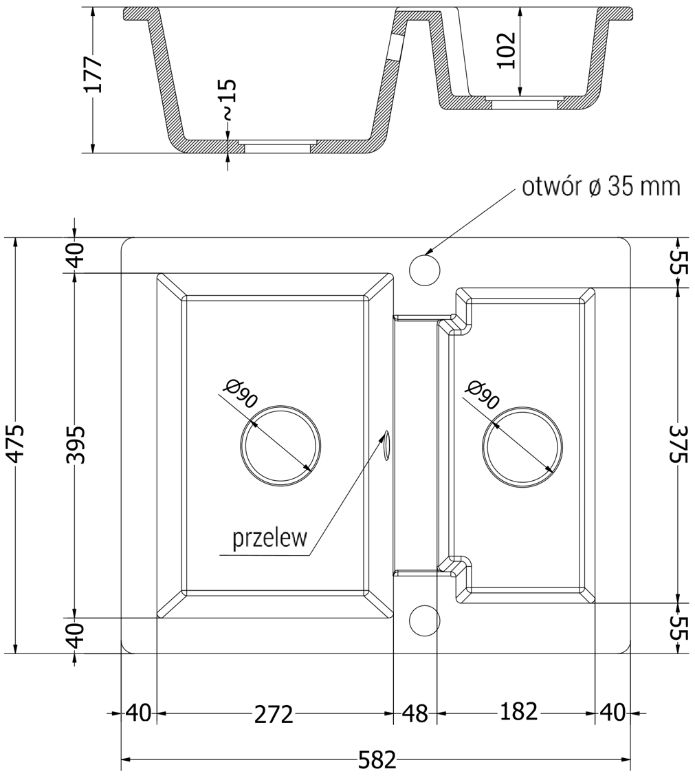 Povrch dřezu je velmi dobře vytvrzený, vyznačuje se výjimečnou odolností proti mechanickému poškození a poškrábání. Trvanlivý materiál umožňuje užívat si dobrý vzhled dřezu po mnoho let používání.