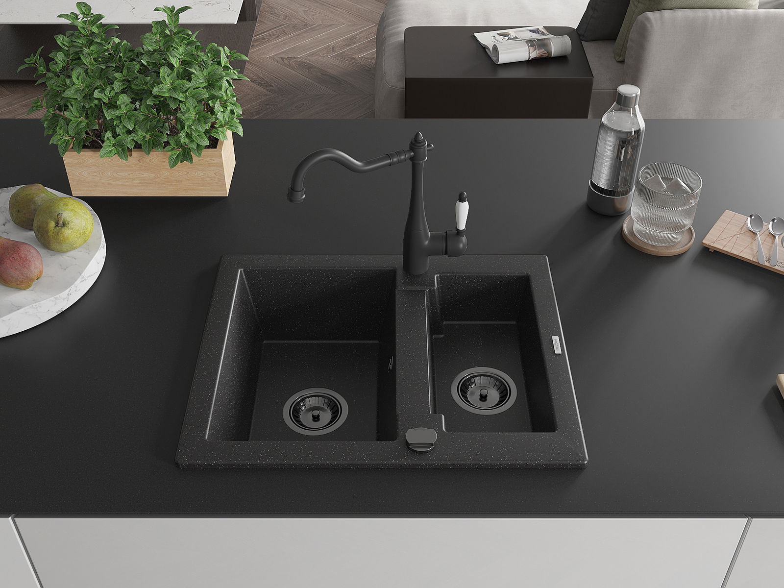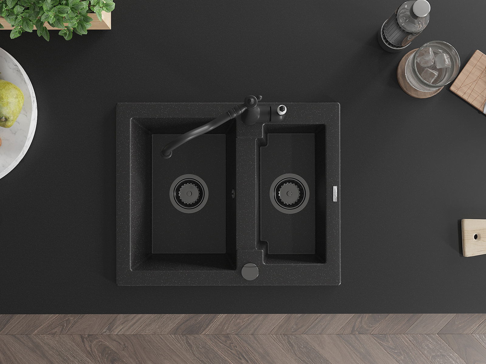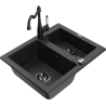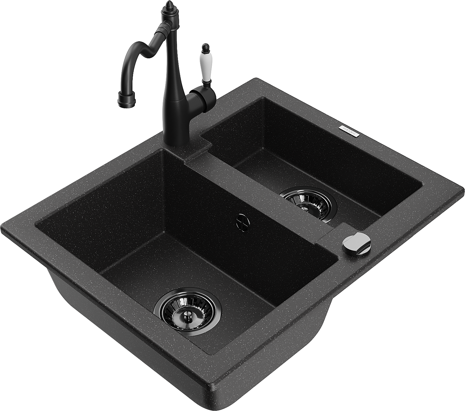 Mexen Carlos granitový dřez 1,5-komorový s kuchyňskou baterií Carla, černý/stříbrný metalický - 6518-73-670700-70-B
