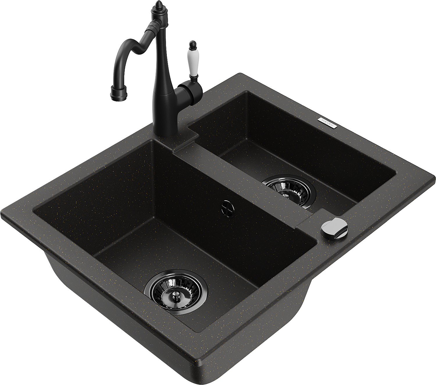 Mexen Carlos granitový dřez 1,5-komorový s kuchyňskou baterií Carla, černá/zlatý metalik - 6518-75-670700-70-B