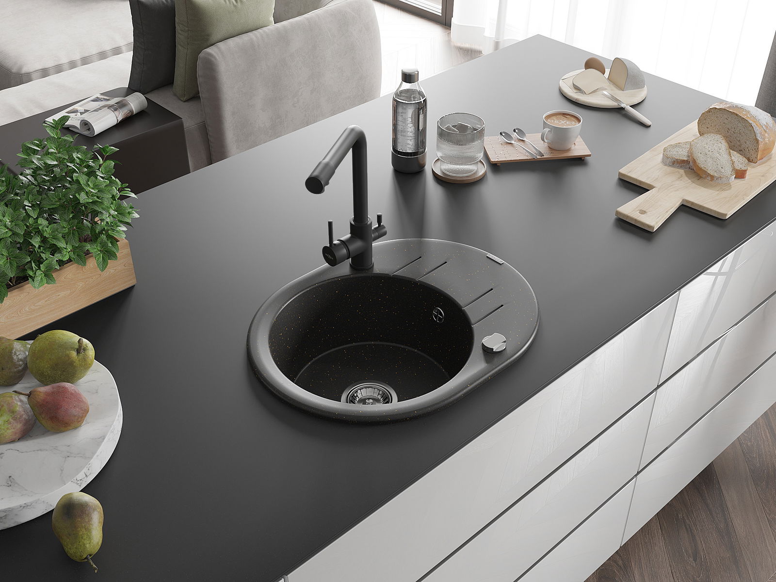 Dřez byl vyroben z vysoce kvalitního granitu. Představuje elegantní a především praktický doplněk každé kuchyně, bez ohledu na její styl. Vysoká kvalita a trvanlivost granitu zajišťují dlouholeté používání.