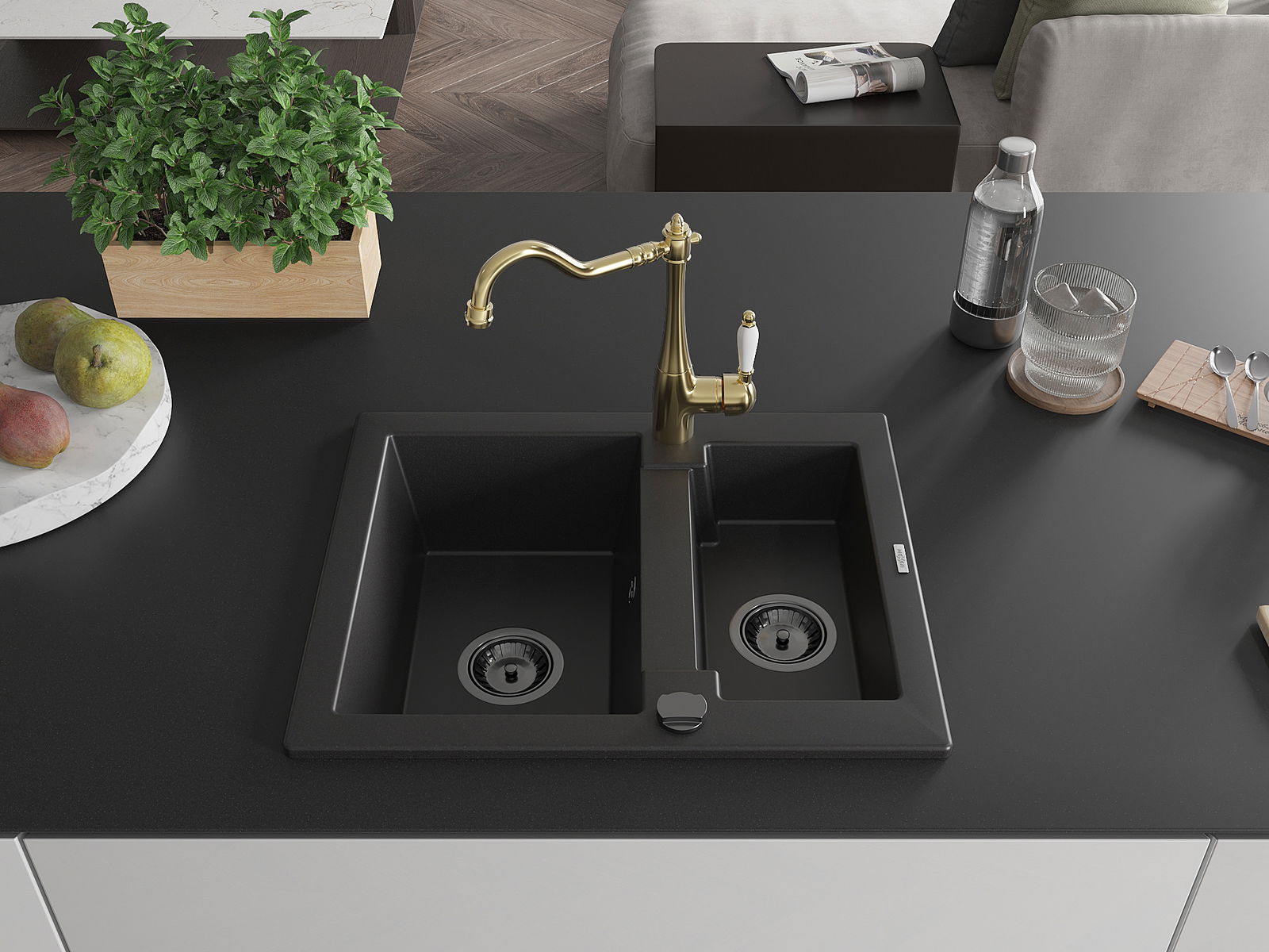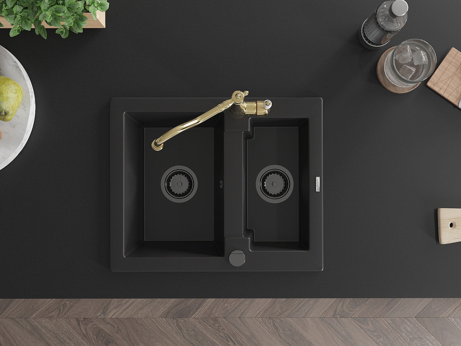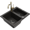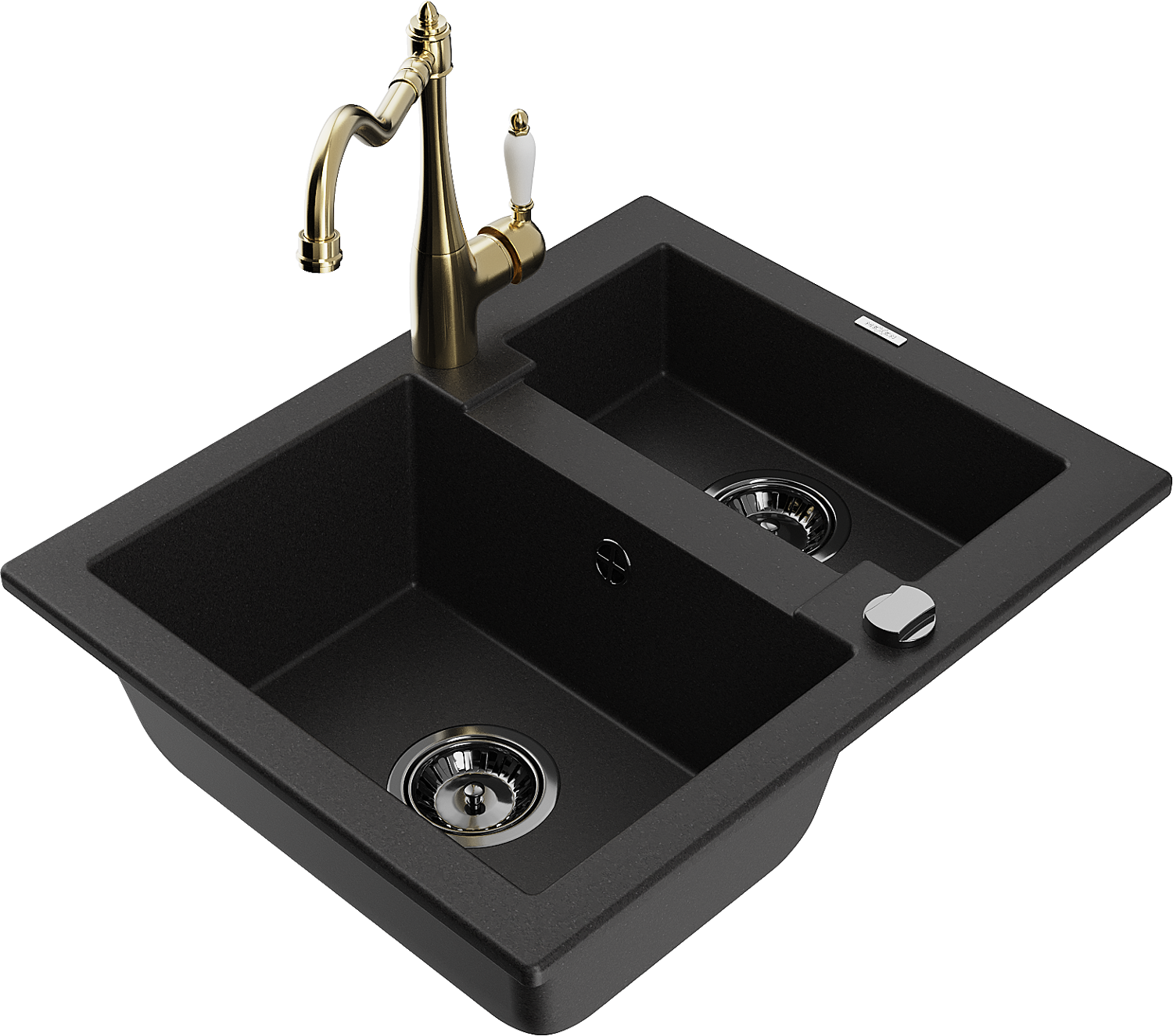 Mexen Carlos žulový dřez 1,5-komorový s kuchyňskou baterií Carla, černý - 6518-77-670700-50-B