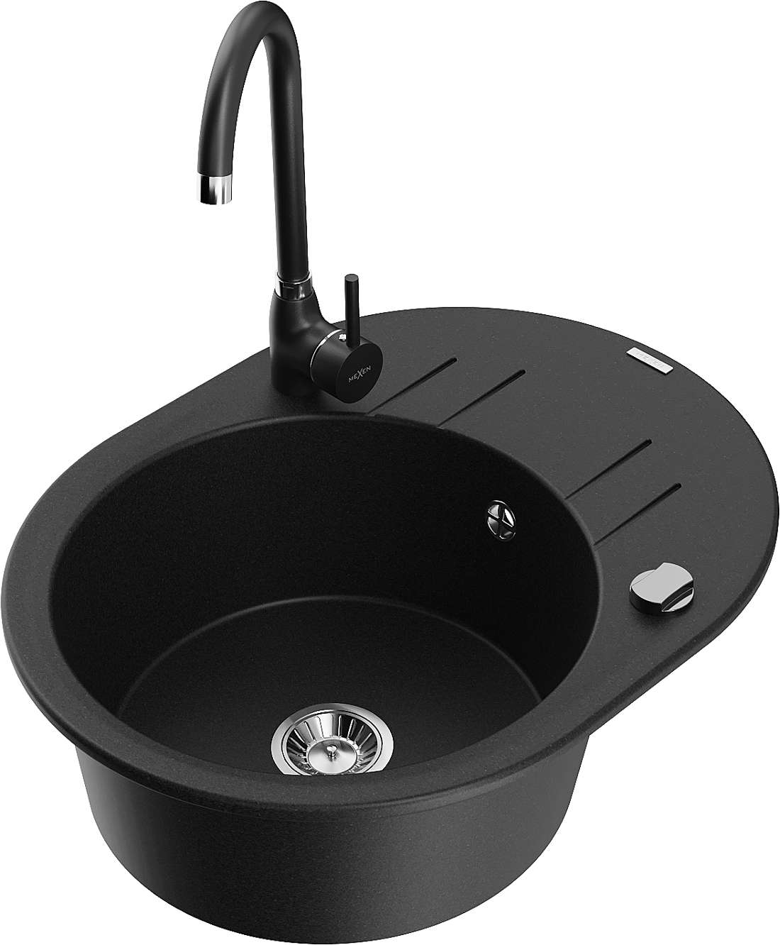 Mexen Kevin granitový jednodřez s odkapávačem a kuchyňskou baterií Telma, černý - 6517-77-670200-70