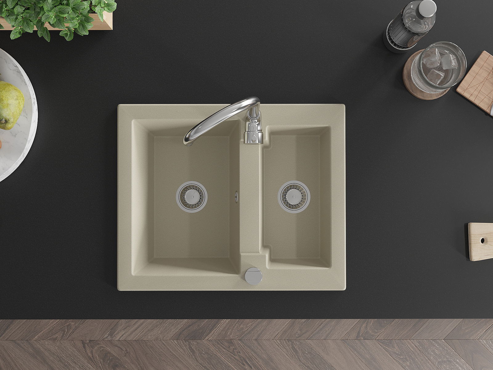 Dřez byl vyroben z vysoce kvalitního granitu. Představuje elegantní a především praktický doplněk každé kuchyně, bez ohledu na její styl. Vysoká kvalita a trvanlivost granitu zajišťují dlouholeté používání.