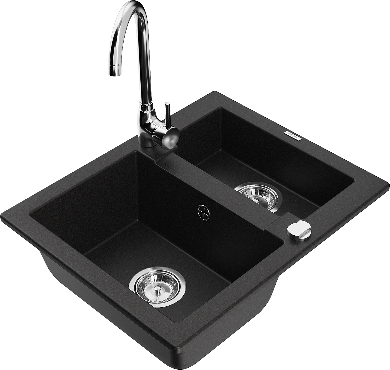 Mexen Carlos granitový dřez 1,5-komorový s kuchyňskou baterií Telma, černý - 6518-77-670200-00