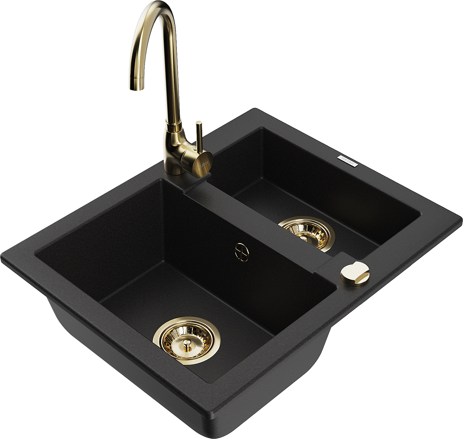 Mexen Carlos granitový dřez 1,5-komorový s kuchyňskou baterií Telma, černý - 6518-77-670200-50
