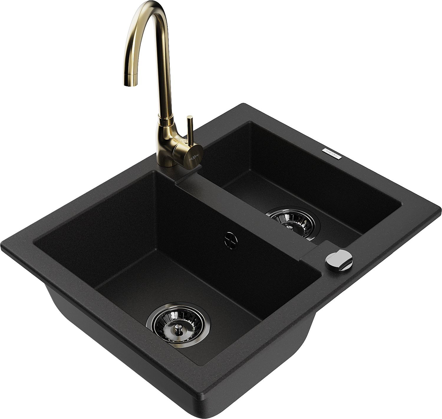 Mexen Carlos granitový dřez 1,5komorový s kuchyňskou baterií Telma, černý - 6518-77-670200-50-B