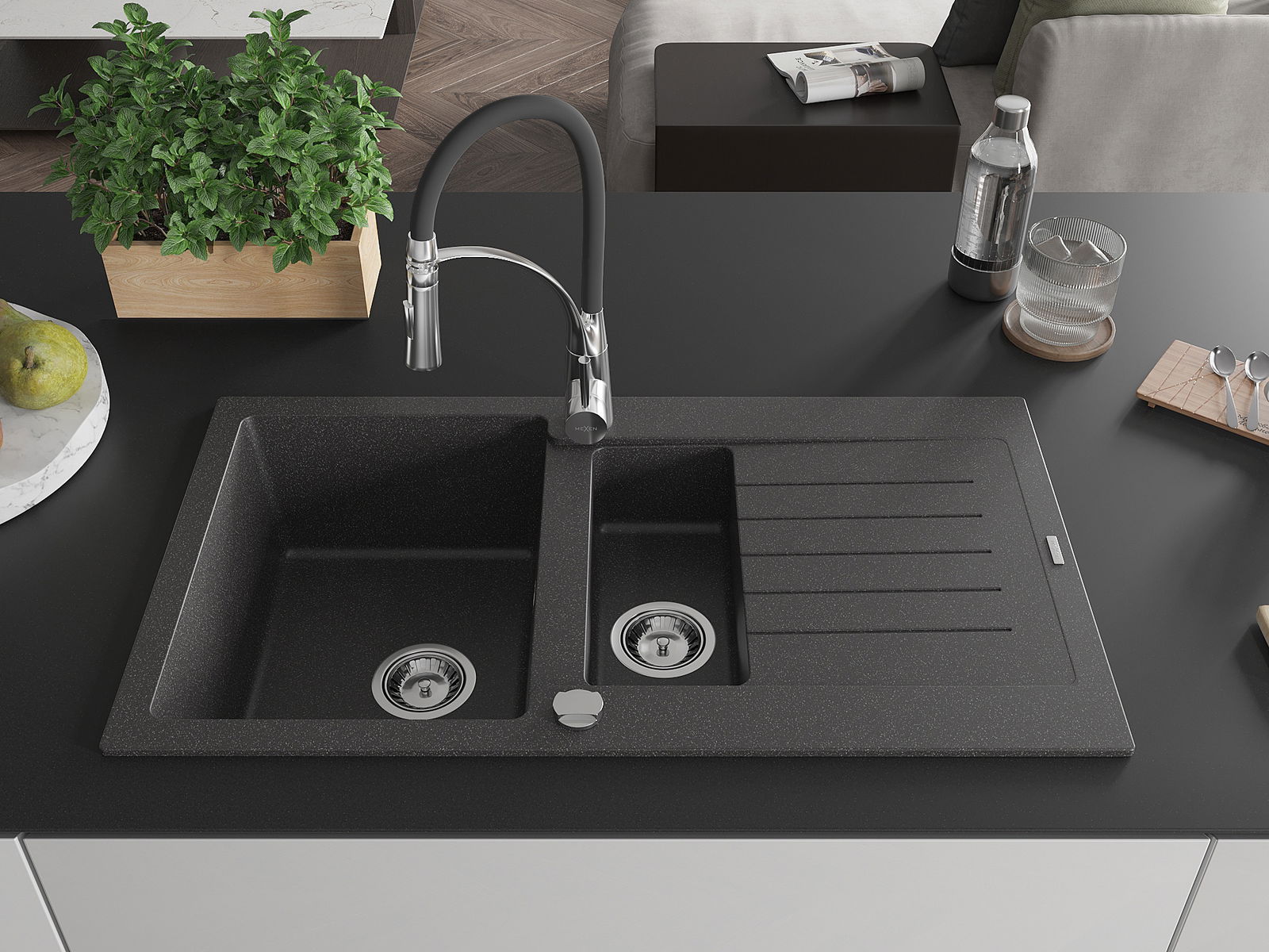 Dřez byl vyroben z vysoce kvalitního granitu. Představuje elegantní a především praktický doplněk každé kuchyně, bez ohledu na její styl. Vysoká kvalita a trvanlivost granitu zajišťují dlouholeté používání.