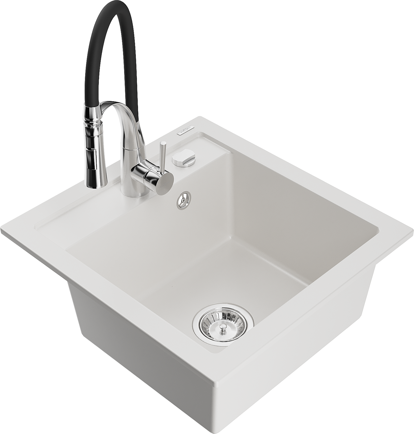Mexen Vito granitový dřez s 1 komorou a kuchyňskou baterií Aster, bílý - 6503-20-73450-07