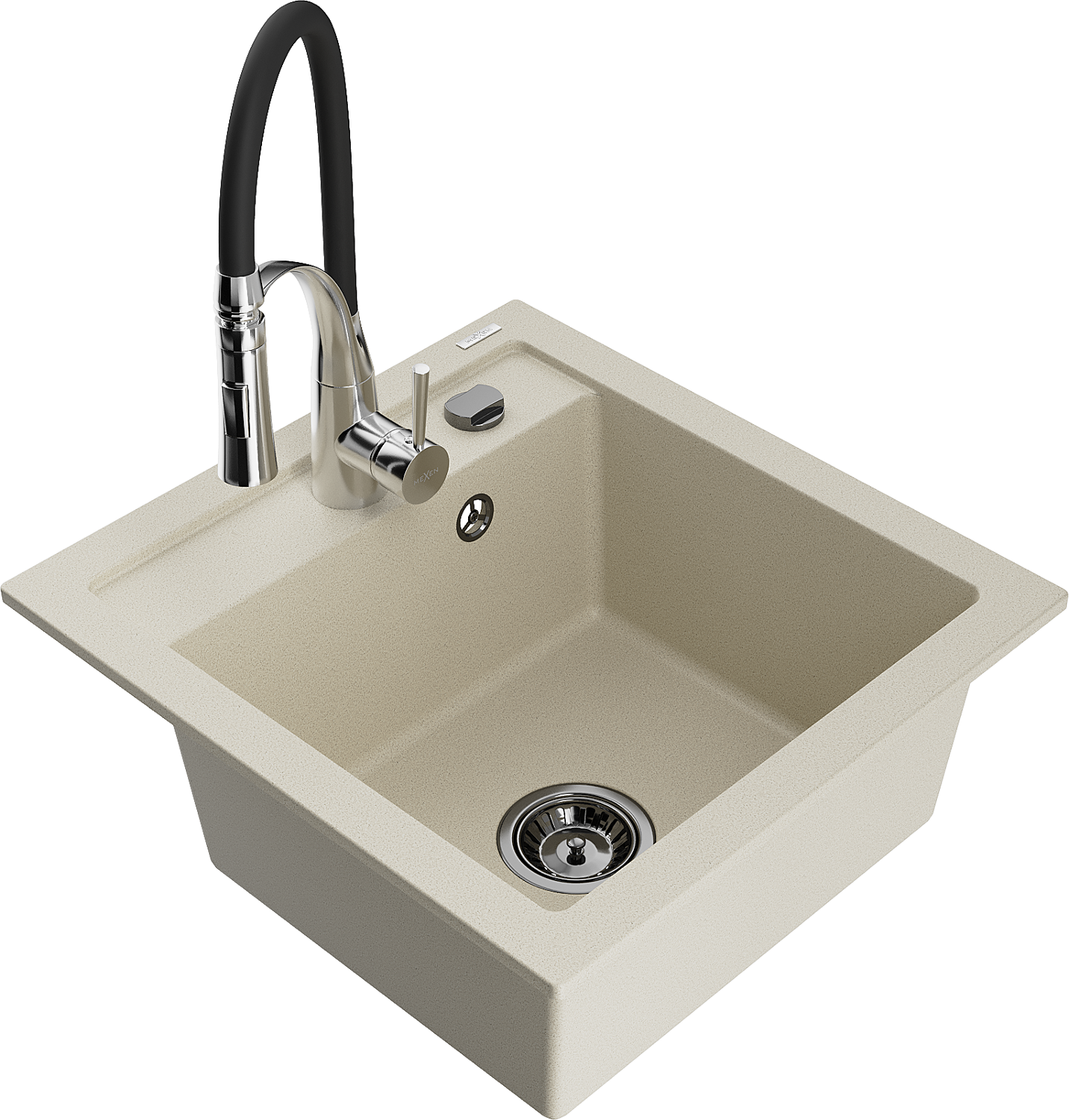 Mexen Vito granitový dřez 1-komorový s kuchyňskou baterií Aster, béžový - 6503-69-73450-07-B