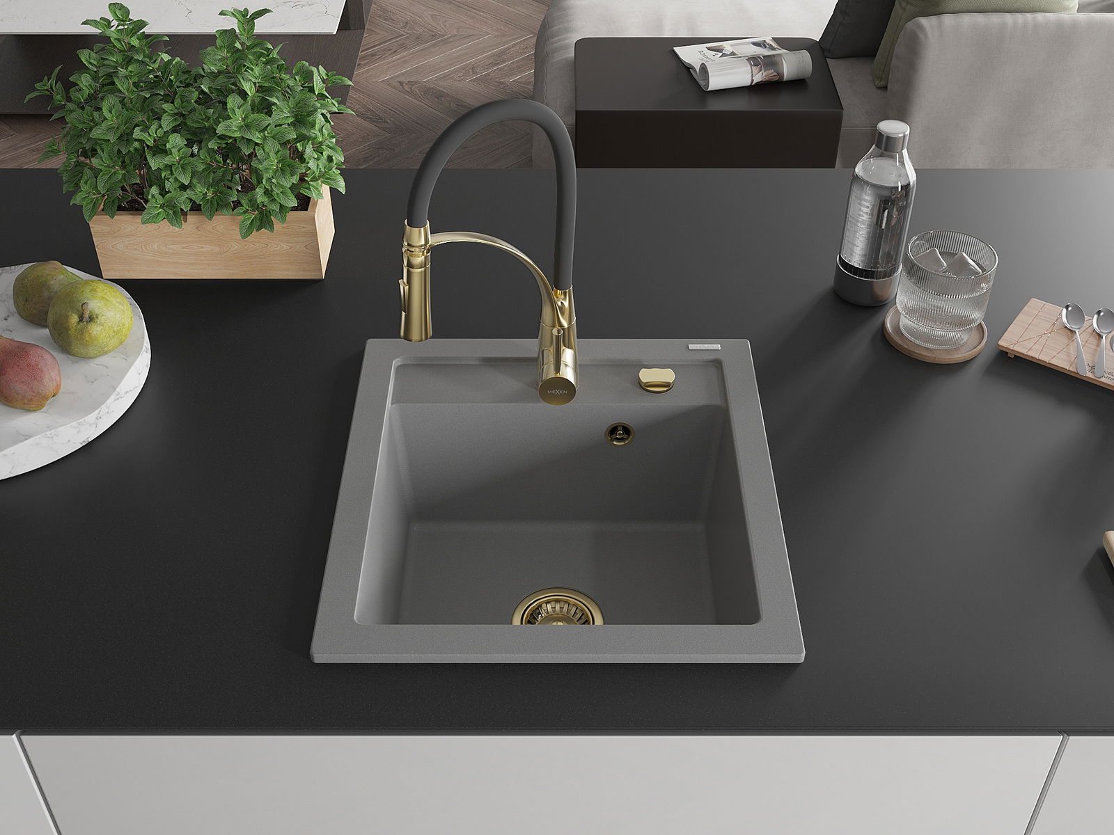 Mexen Vito granitový dřez 1-miskový s kuchyňskou baterií Aster, šedý - 6503-71-73450-57-G