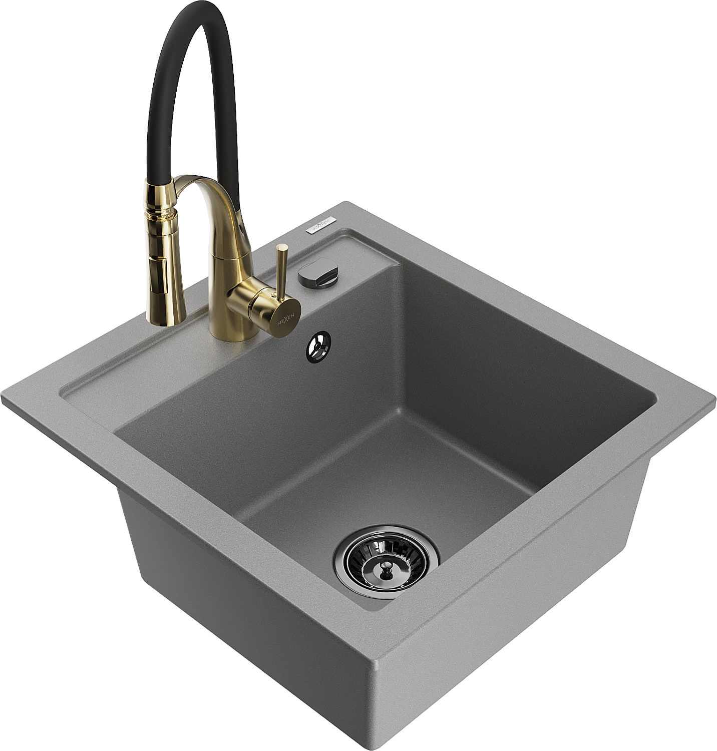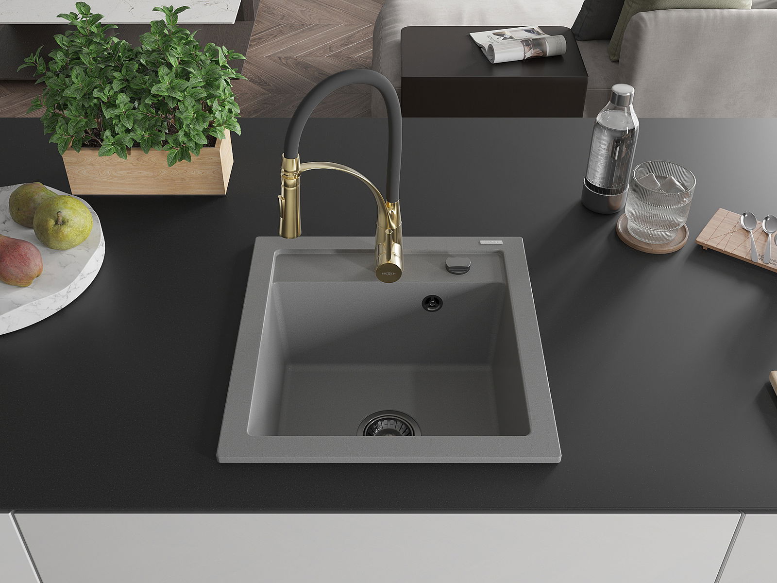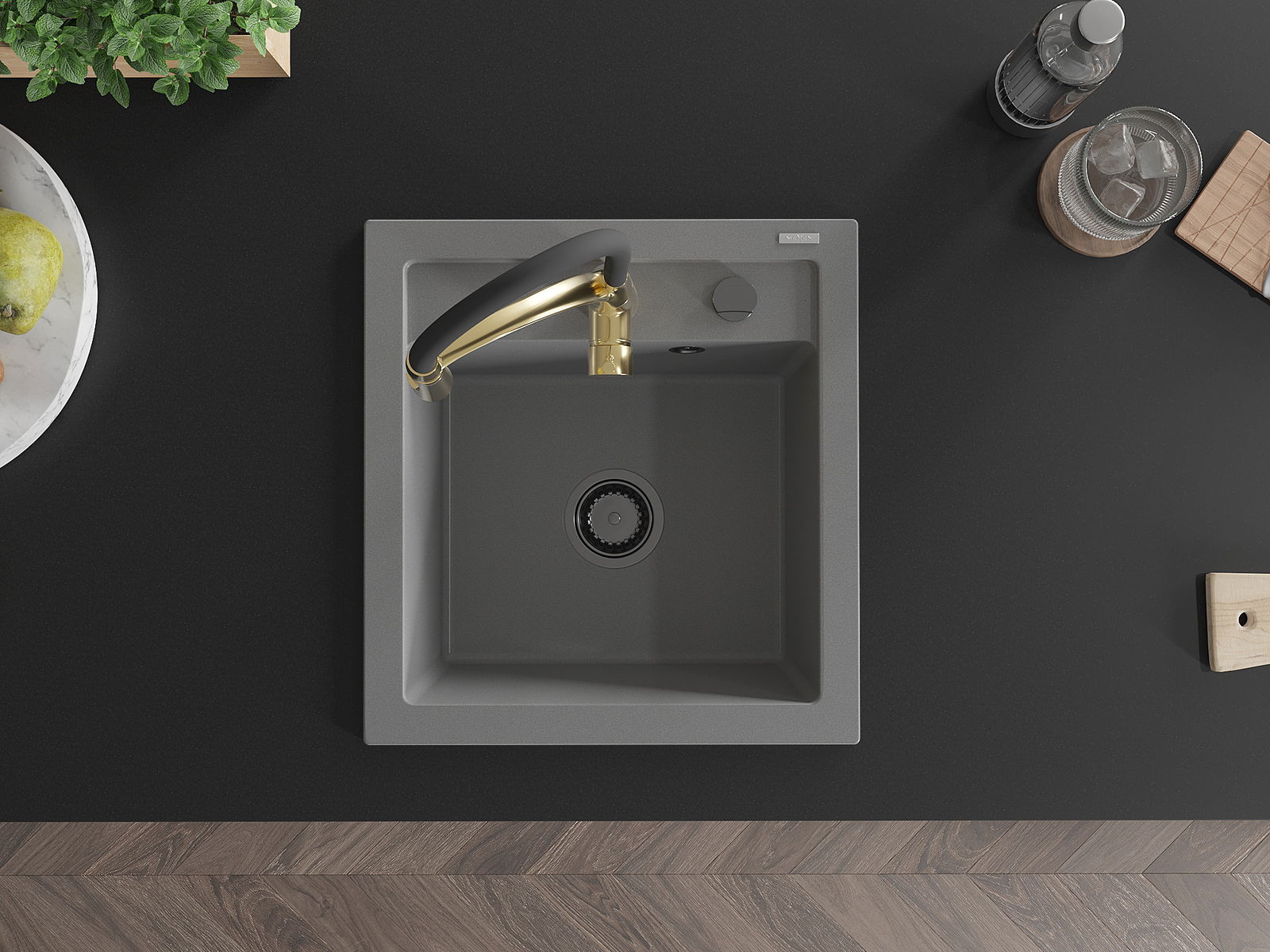 Mexen Vito granitový dřez 1-komorový s kuchyňskou baterií Aster, šedý - 6503-71-73450-57-B