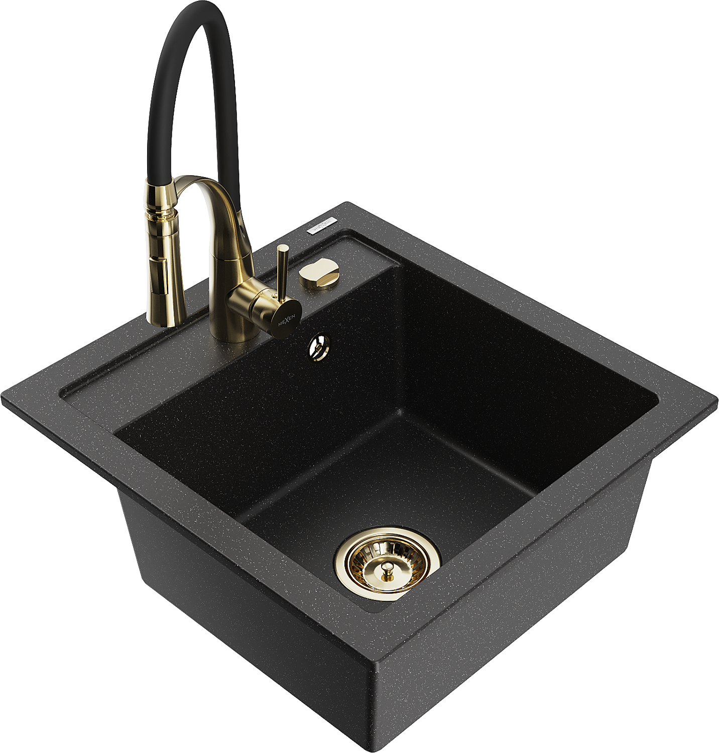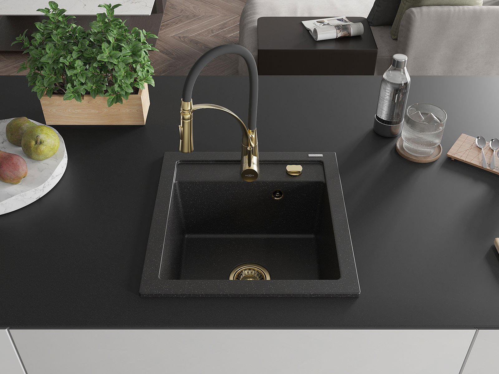 Mexen Vito granitový dřez 1-komorový s kuchyňskou baterií Aster, černý/stříbrný metalický- 6503-73-73450-57-G