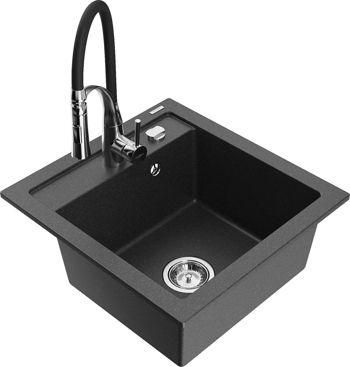 Mexen Vito granitový dřez 1-komorový s kuchyňskou baterií Aster, černý kropenatý - 6503-76-73450-07