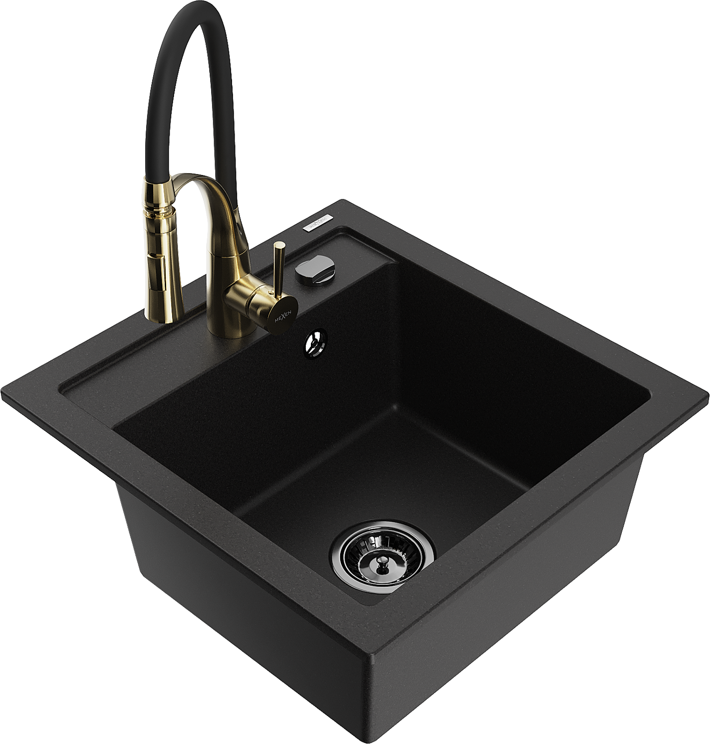 Mexen Vito granitový dřez 1-komorový s kuchyňskou baterií Aster, černý - 6503-77-73450-57-B