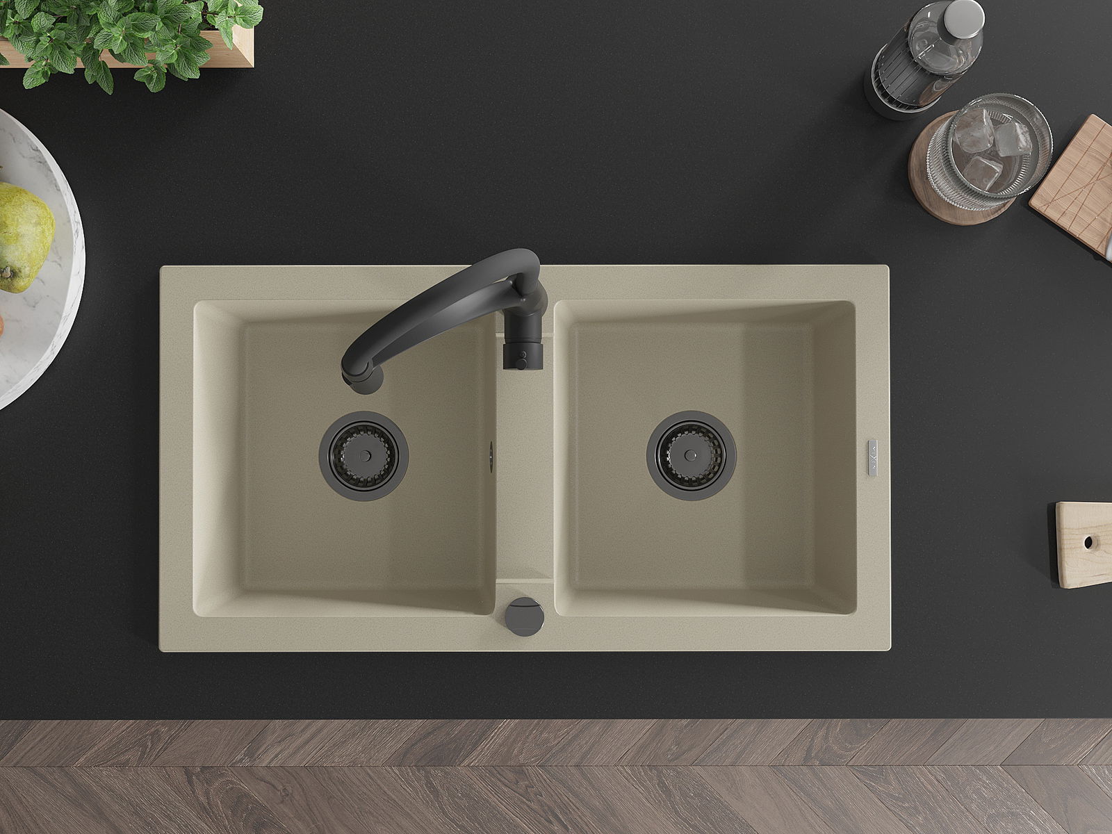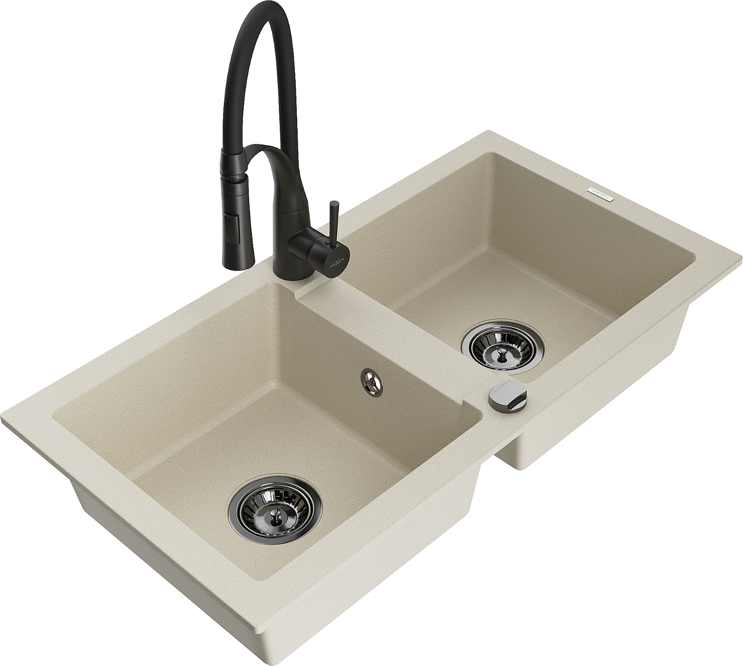 Mexen Mario granitový dřez 2-komorový s kuchyňskou baterií Aster, béžový - 6504-69-73450-70-B