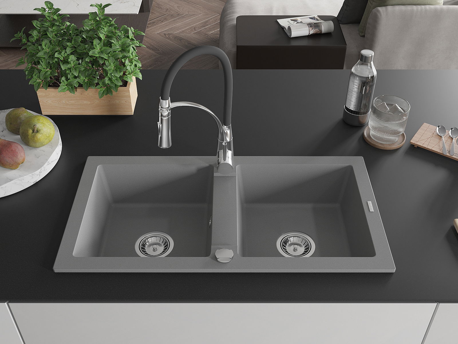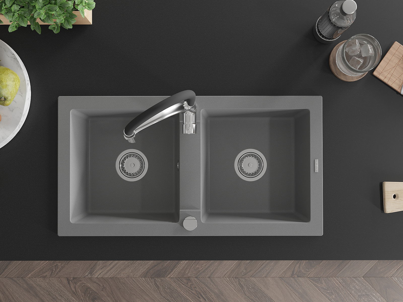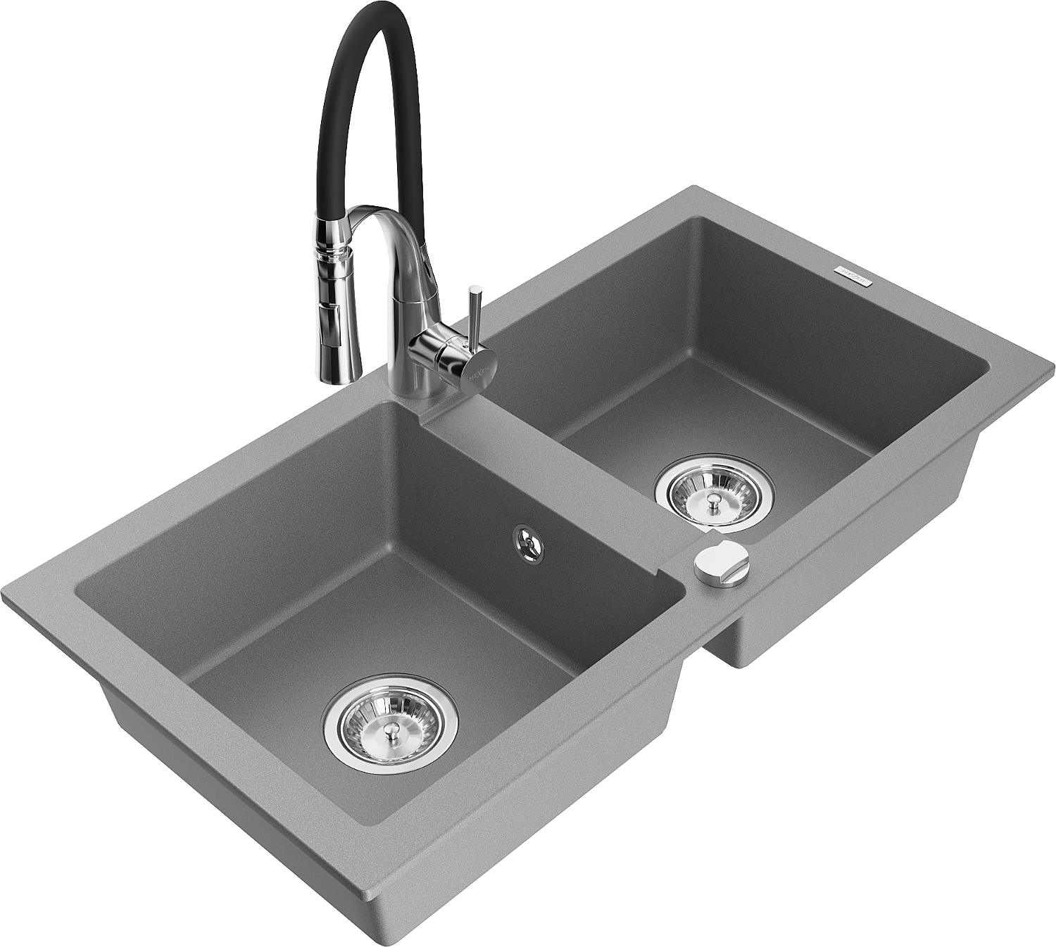 Mexen Mario žulový dvoudřez s kuchyňskou baterií Aster, šedý - 6504-71-73450-07