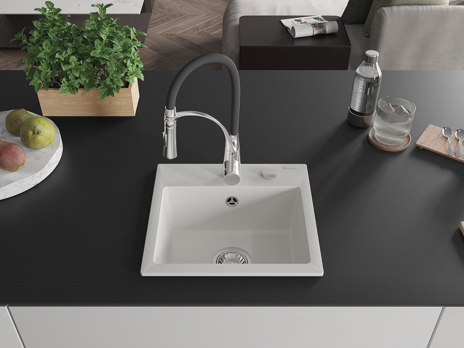 Povrch dřezu je odolný proti skvrnám a zabarvení, což usnadňuje jeho čištění a zachovává jeho barvu po dlouhou dobu používání. Estetický a praktický doplněk každé kuchyně.