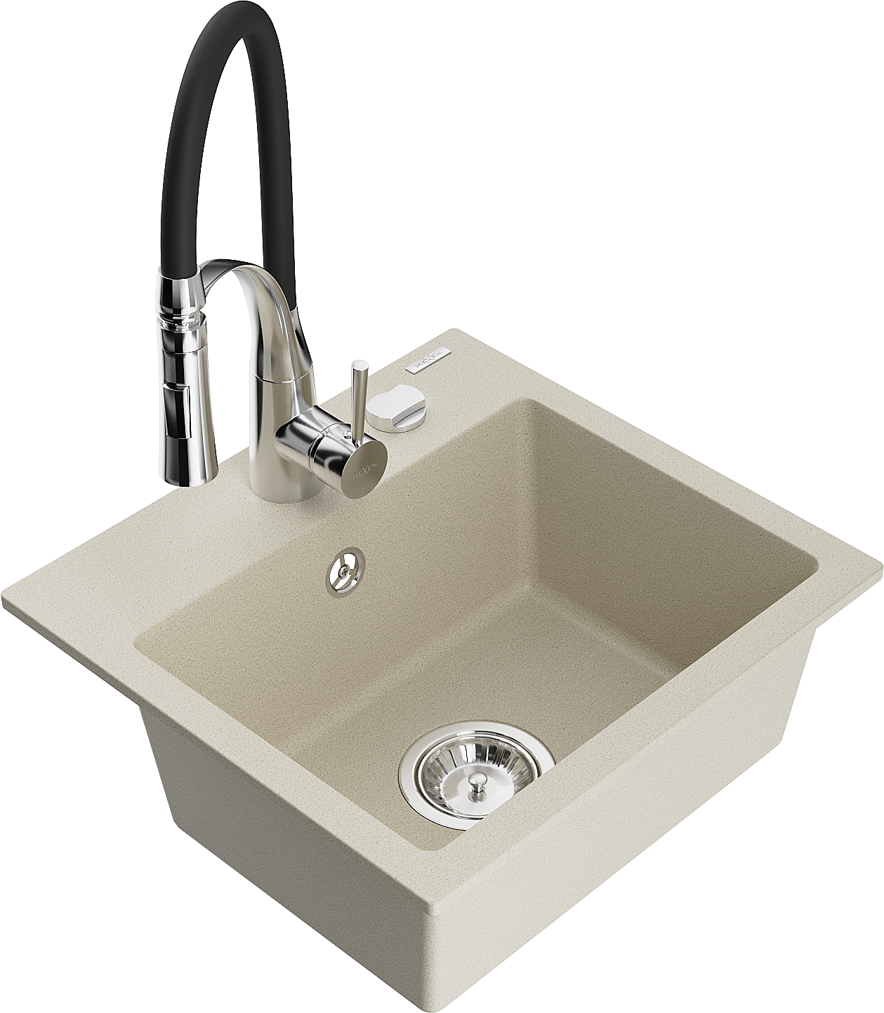Mexen Milo granitový jednokomorový dřez s kuchyňskou baterií Aster, béžový - 6505-69-73450-07