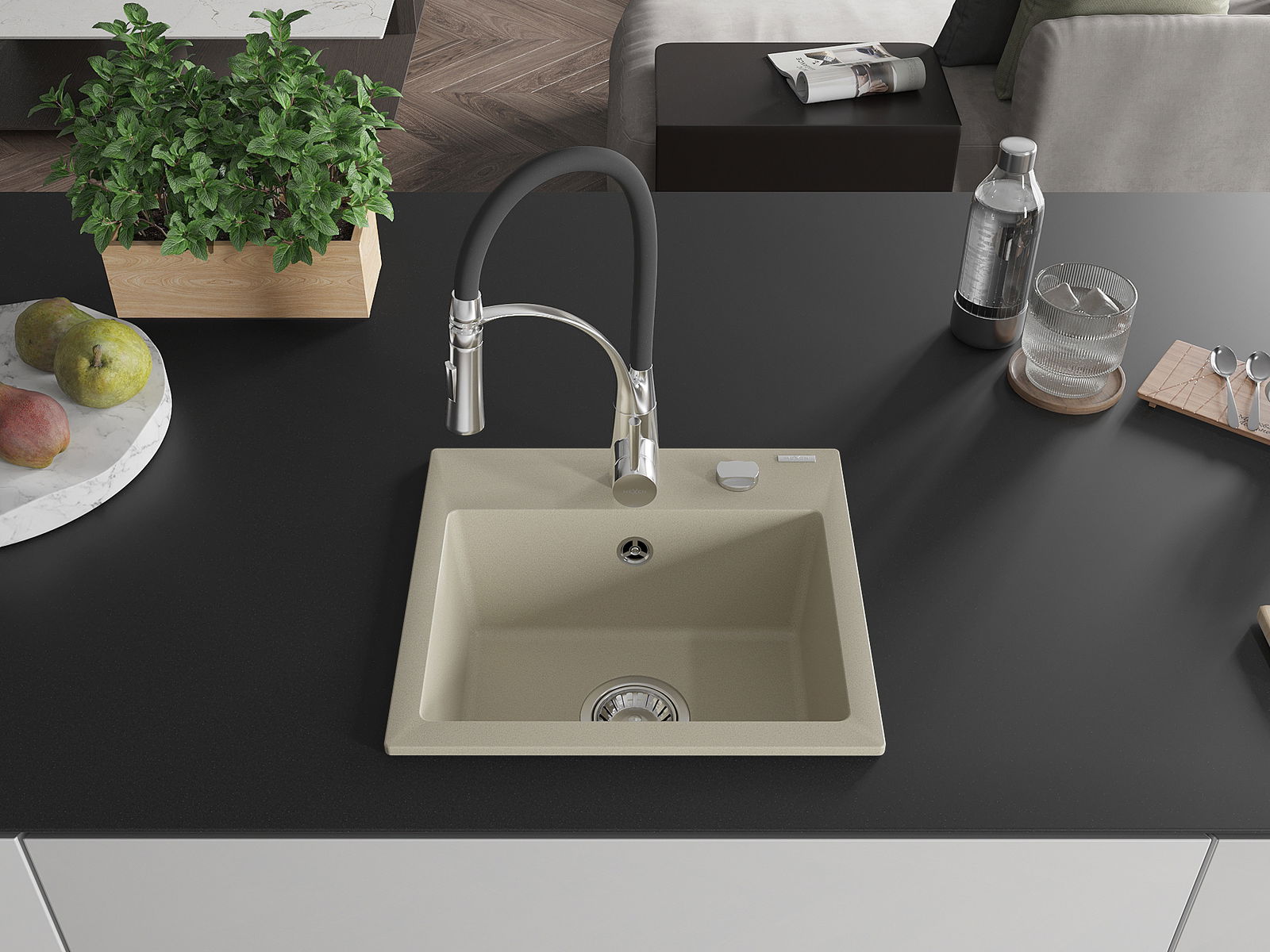 Dřez byl vyroben z vysoce kvalitního granitu. Představuje elegantní a především praktický doplněk každé kuchyně, bez ohledu na její styl. Vysoká kvalita a trvanlivost granitu zajišťují dlouholeté používání.