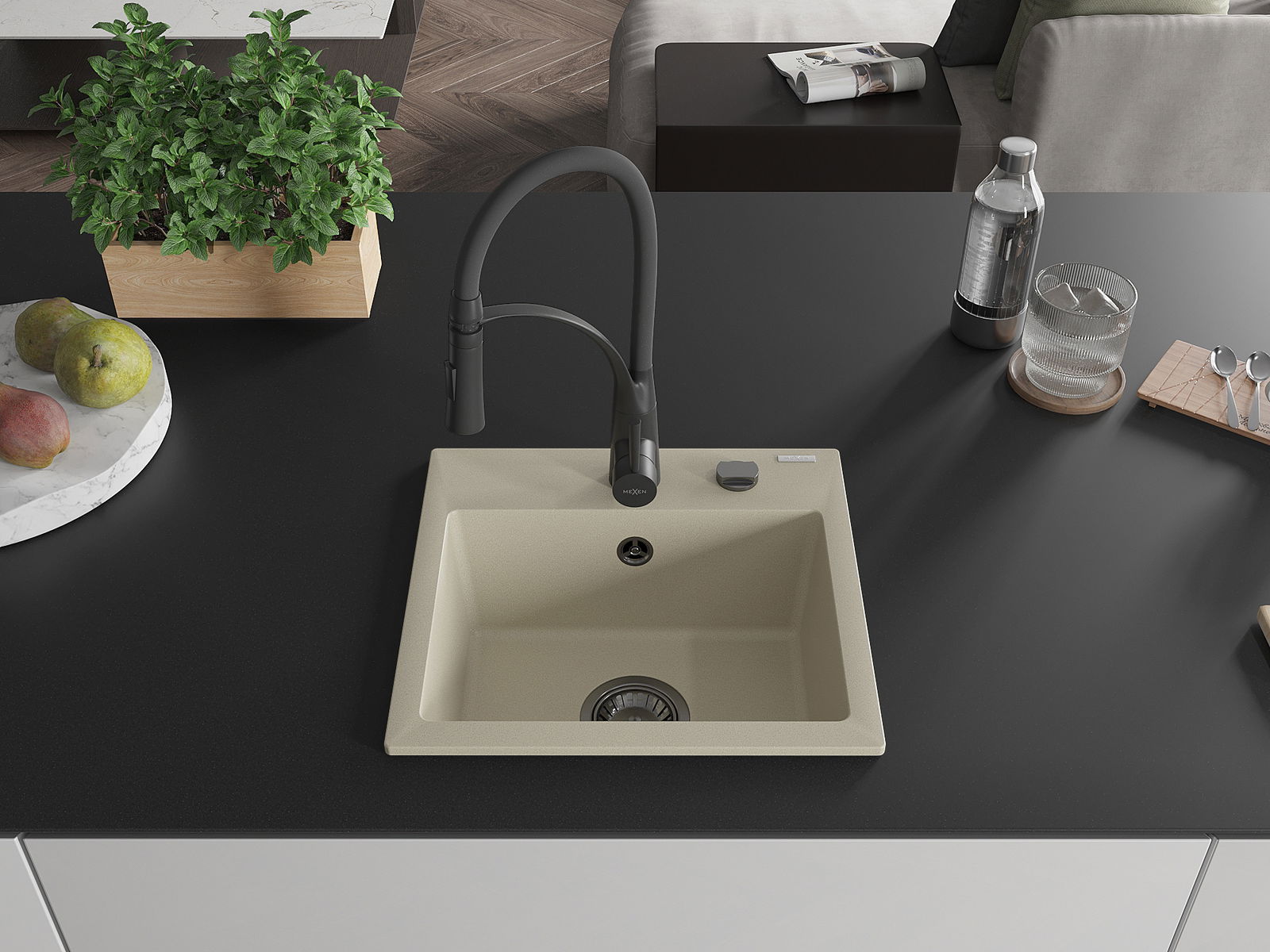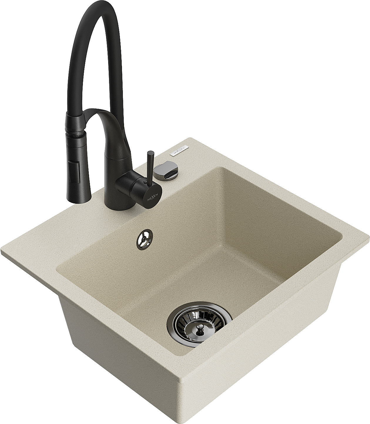 Mexen Milo granitový dřez 1-komorový s kuchyňskou baterií Aster, béžový - 6505-69-73450-70-B