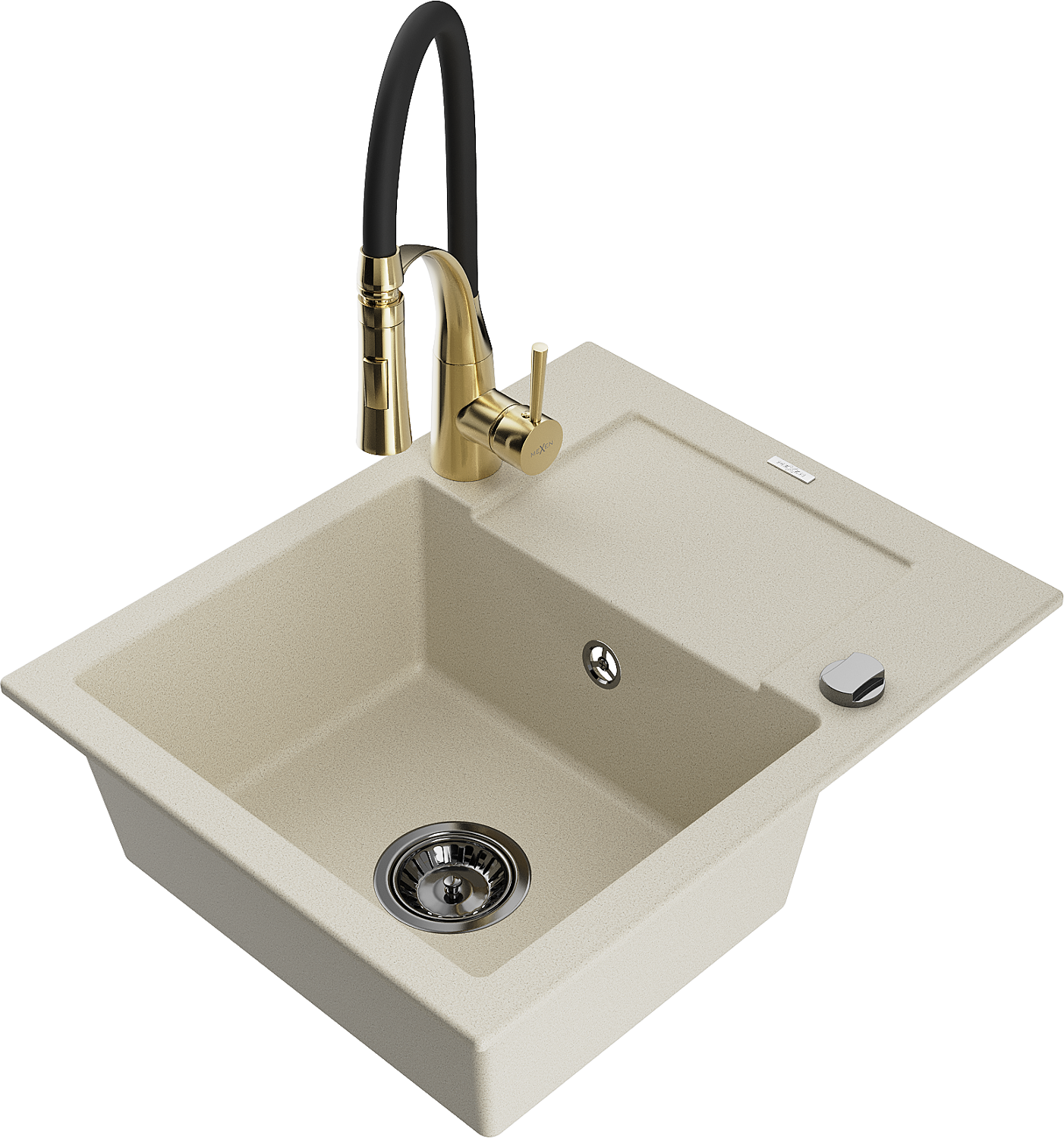 Mexen Enzo granitový dřez 1-komorový s odkapávačem a kuchyňskou baterií Aster, béžový - 6506-69-73450-57-B