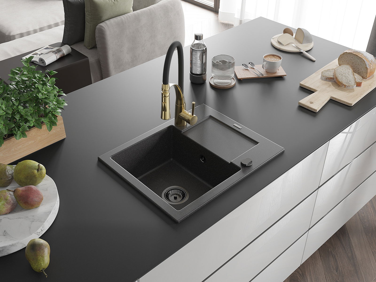 Dřez byl vyroben z vysoce kvalitního granitu. Představuje elegantní a především praktický doplněk každé kuchyně, bez ohledu na její styl. Vysoká kvalita a trvanlivost granitu zajišťují dlouholeté používání.