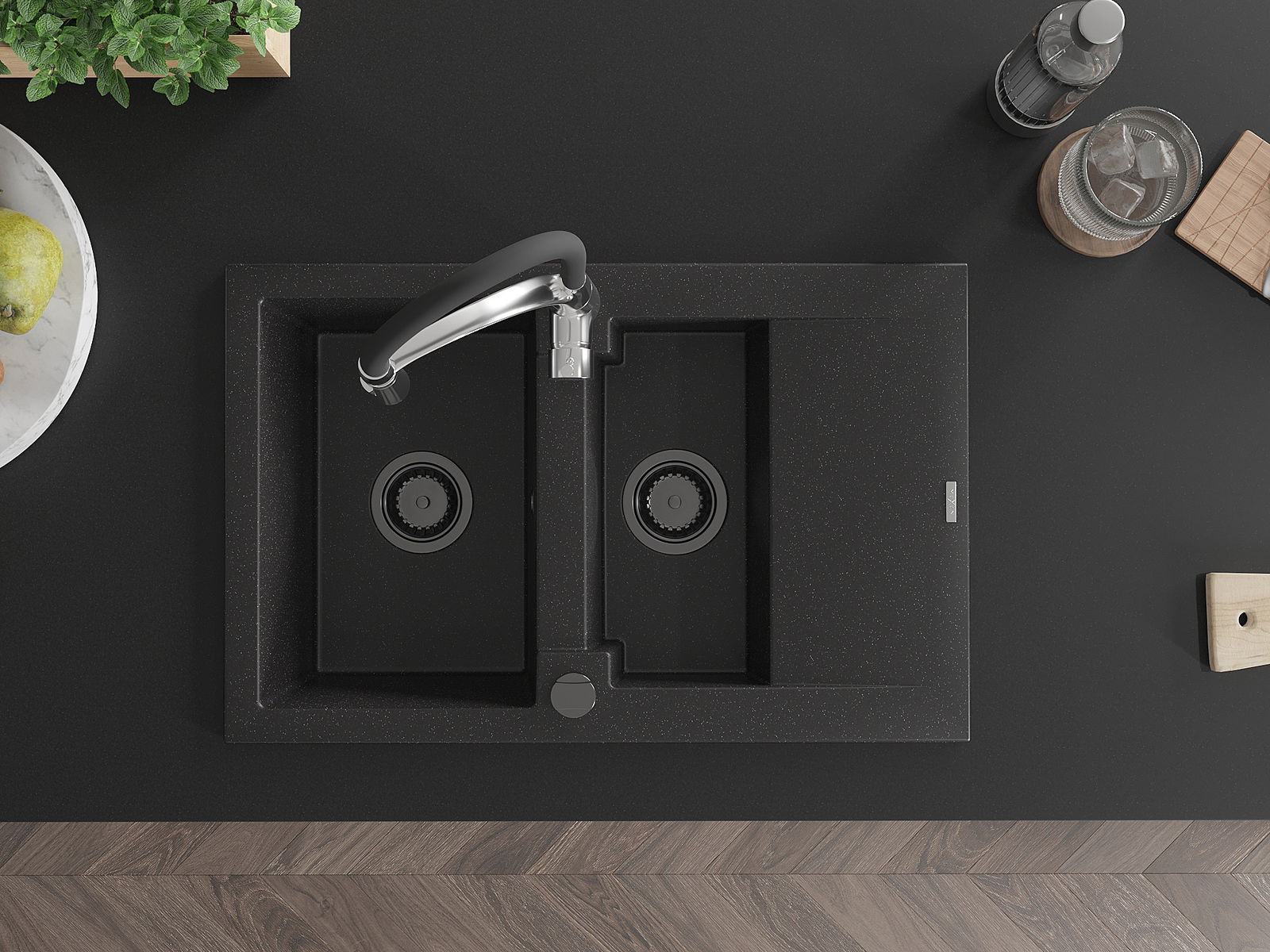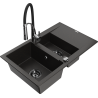 Mexen Gaspar granitový dřez 1,5-komorový s odkapávačem a kuchyňskou baterií Aster, černý/stříbrný - 6507-73-73450-07-B