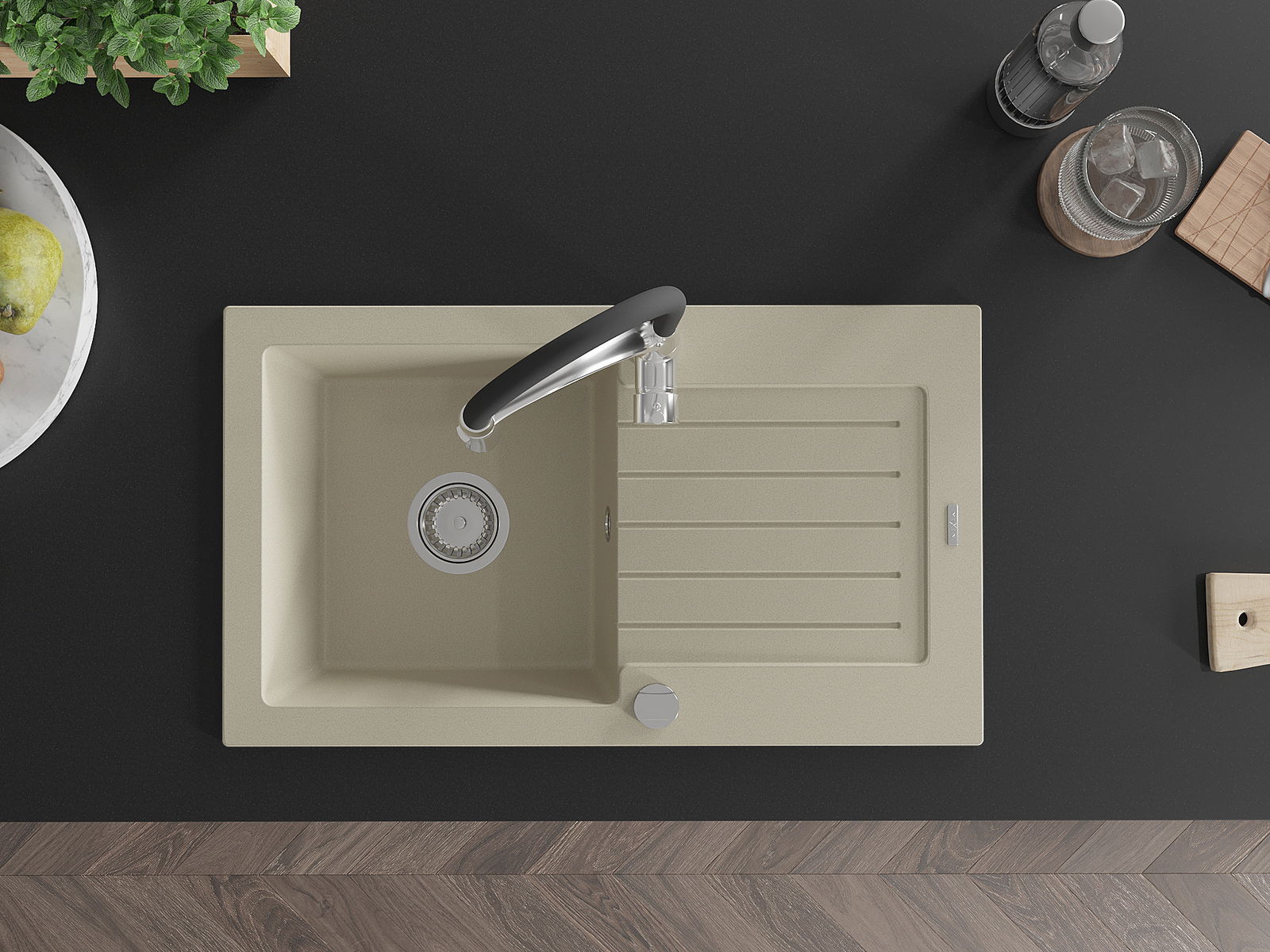 Dřez byl vyroben z vysoce kvalitního granitu. Představuje elegantní a především praktický doplněk každé kuchyně, bez ohledu na její styl. Vysoká kvalita a trvanlivost granitu zajišťují dlouholeté používání.