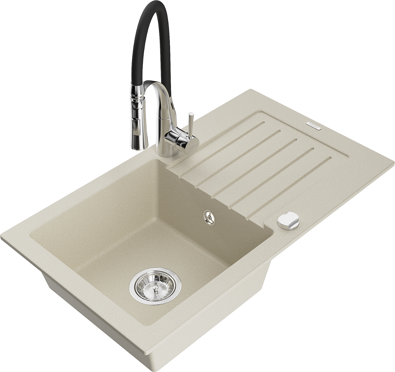 Mexen Pablo granitový dřez 1-komorový s odkapávačem a kuchyňskou baterií Aster, béžový - 6510-69-73450-07