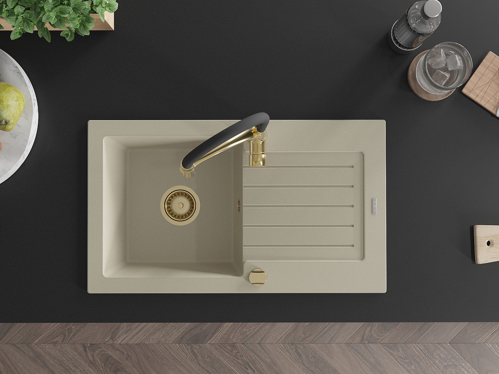 Mexen Pablo žulový dřez 1-komorový s odkapávačem a kuchyňskou baterií Aster, béžový - 6510-69-73450-57-G