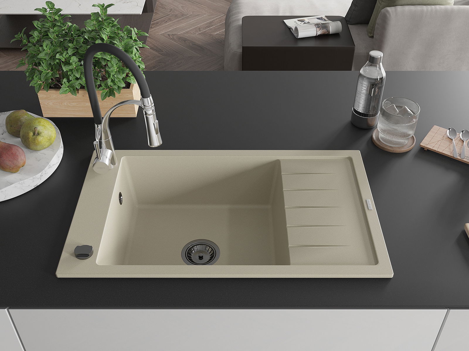 Dřez byl vyroben z vysoce kvalitního granitu. Představuje elegantní a především praktický doplněk každé kuchyně, bez ohledu na její styl. Vysoká kvalita a trvanlivost granitu zajišťují dlouholeté používání.