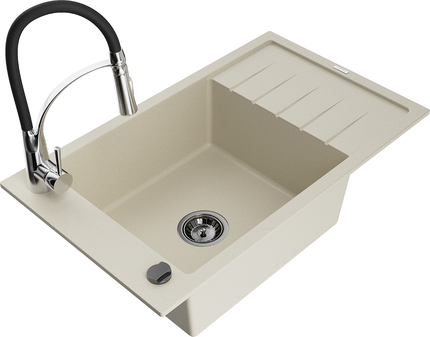 Mexen Elias granitový dřez 1-komorový s odkapávačem a kuchyňskou baterií Aster, béžový - 6511-69-73450-07-B