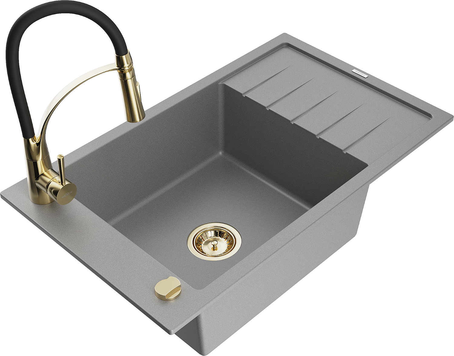 Mexen Elias granitový dřez s 1 komorou a odkapávačem a kuchyňskou baterií Aster, šedá - 6511-71-73450-57-G