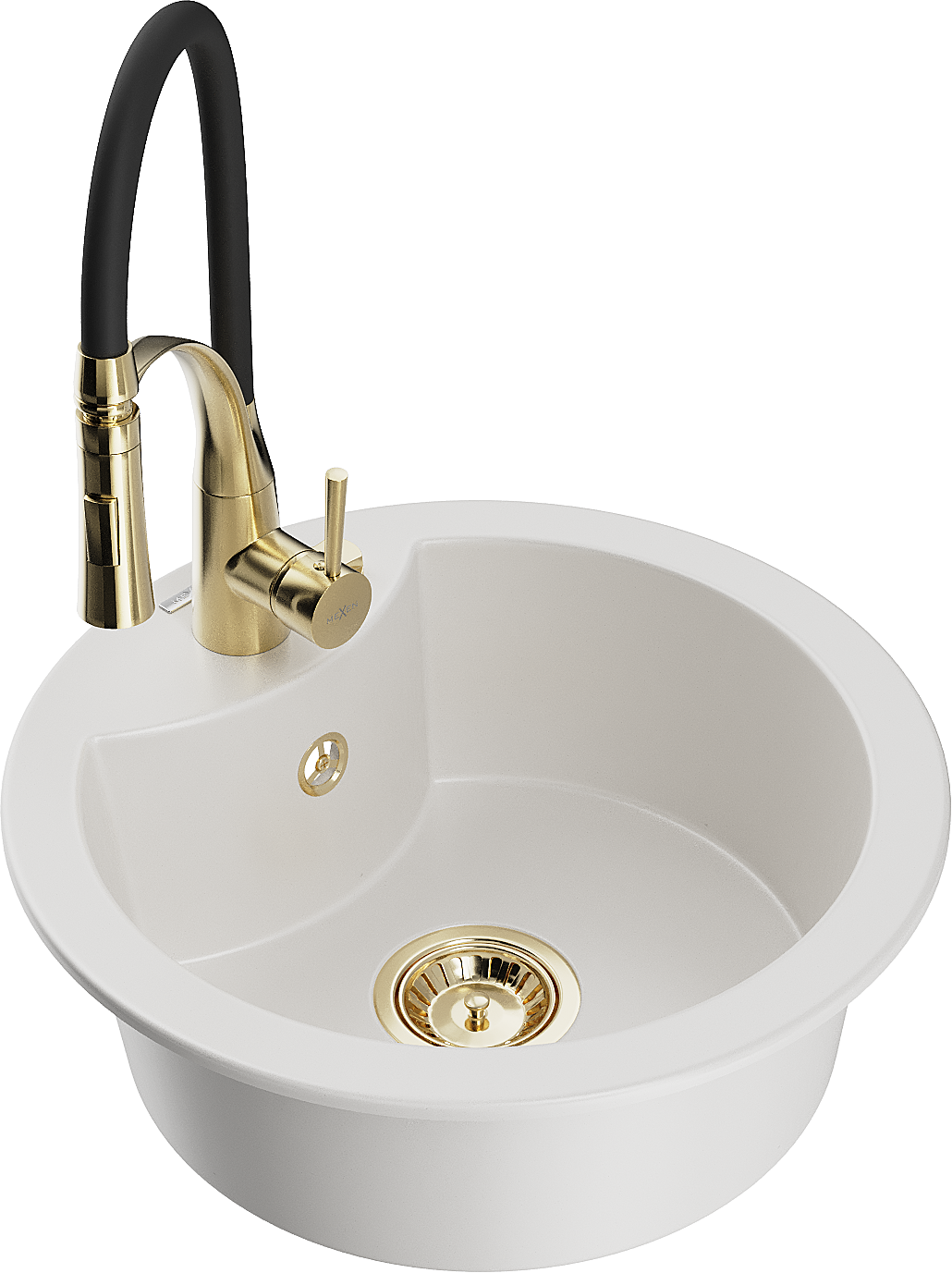 Mexen Diego granitový dřez s 1 komorou a kuchyňskou baterií Aster, bílý - 6512-20-73450-57-G
