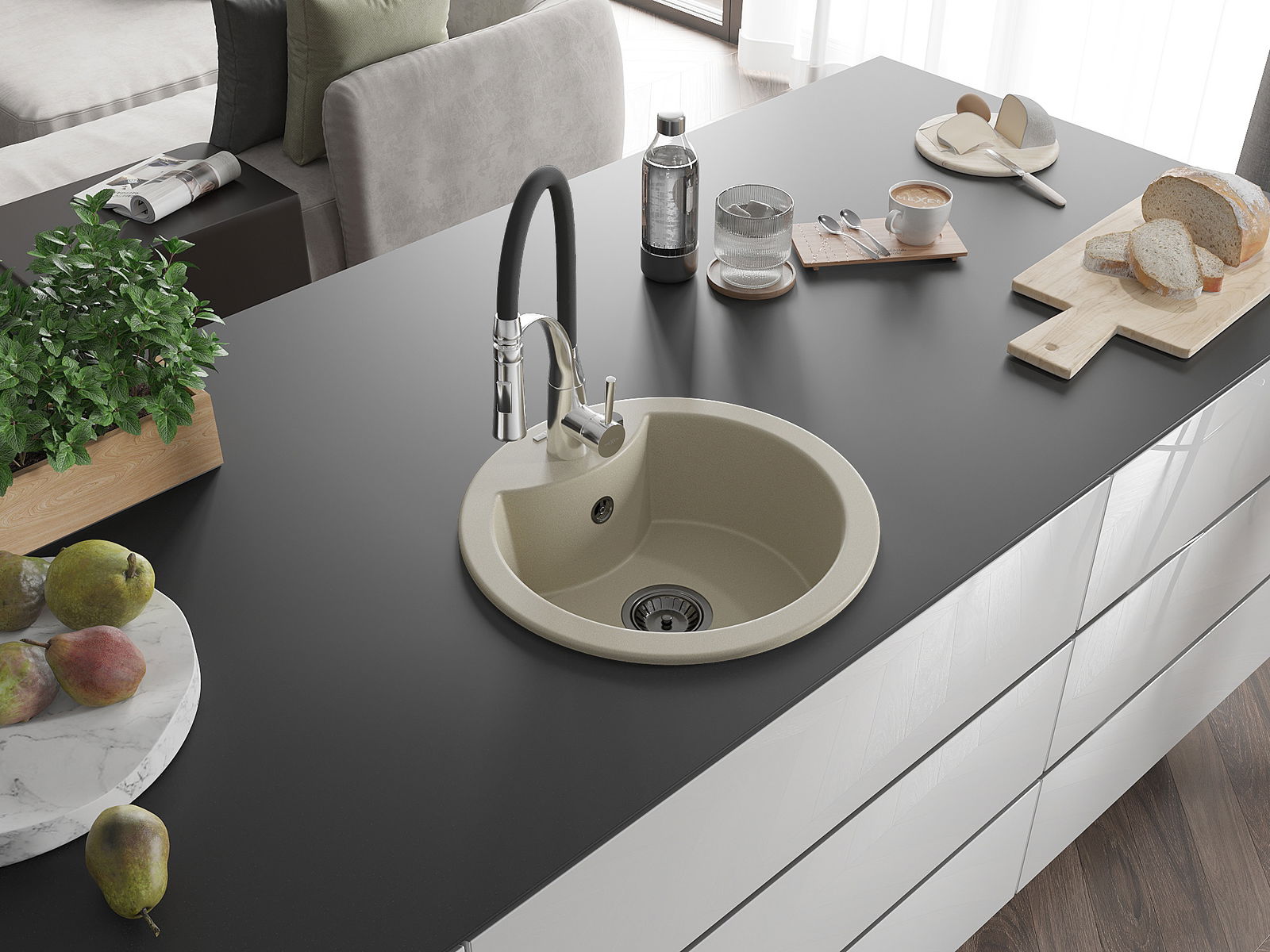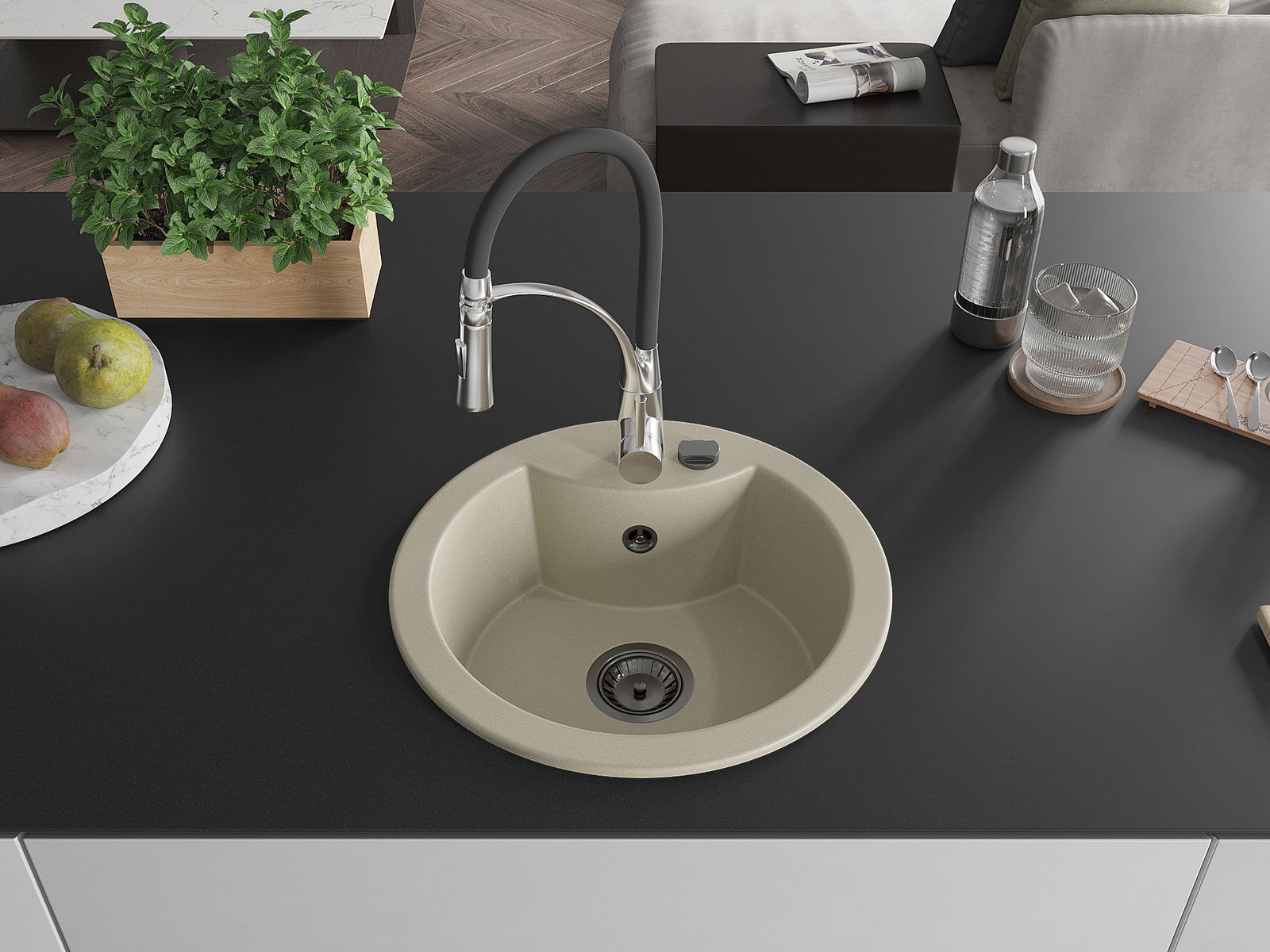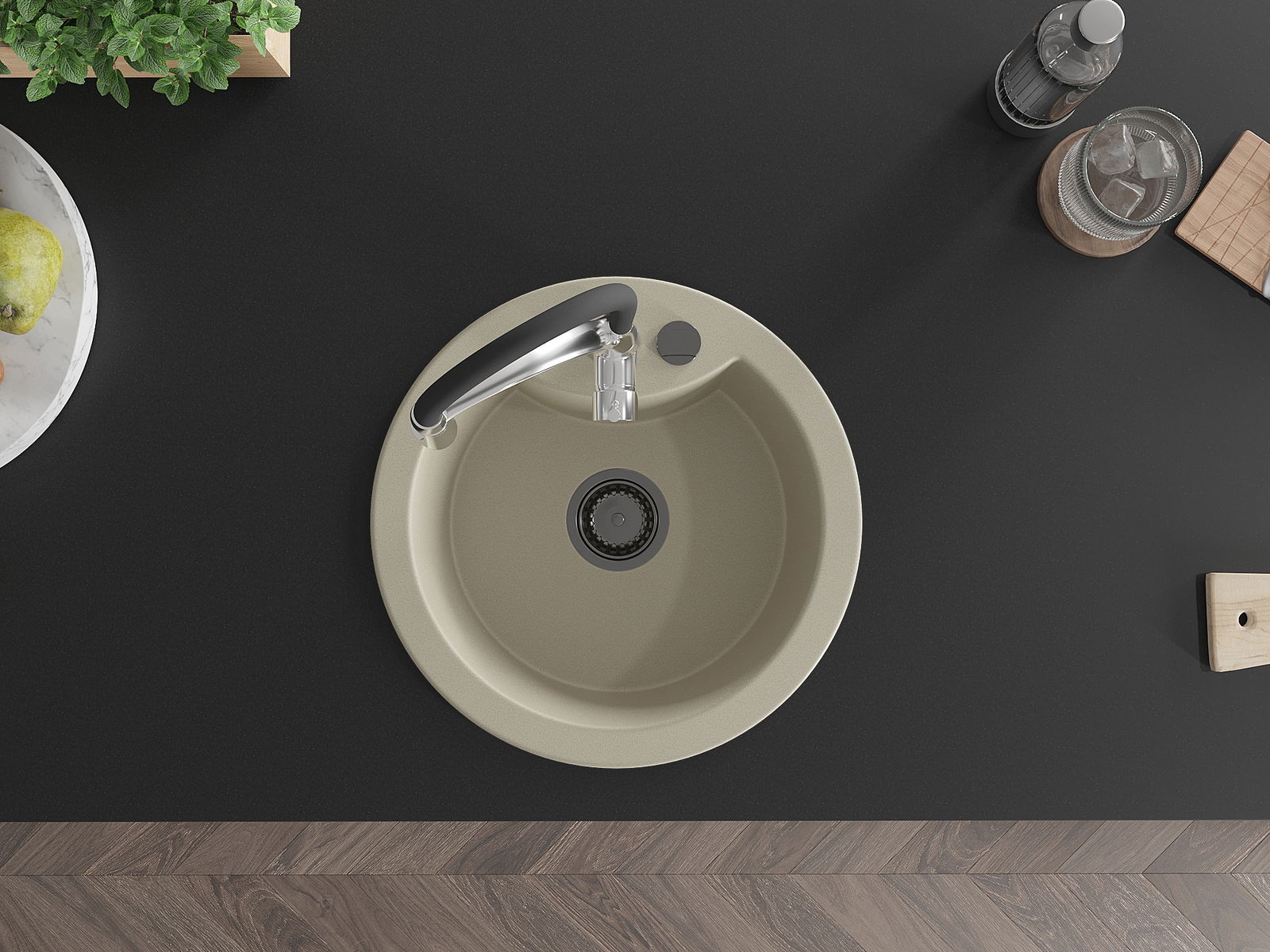 Dřez byl vyroben z vysoce kvalitního granitu. Představuje elegantní a především praktický doplněk každé kuchyně, bez ohledu na její styl. Vysoká kvalita a trvanlivost granitu zajišťují dlouholeté používání.