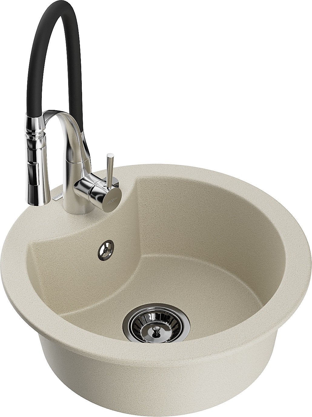 Mexen Diego dřez granitový 1-komorový s kuchyňskou baterií Aster, béžový - 6512-69-73450-07-B