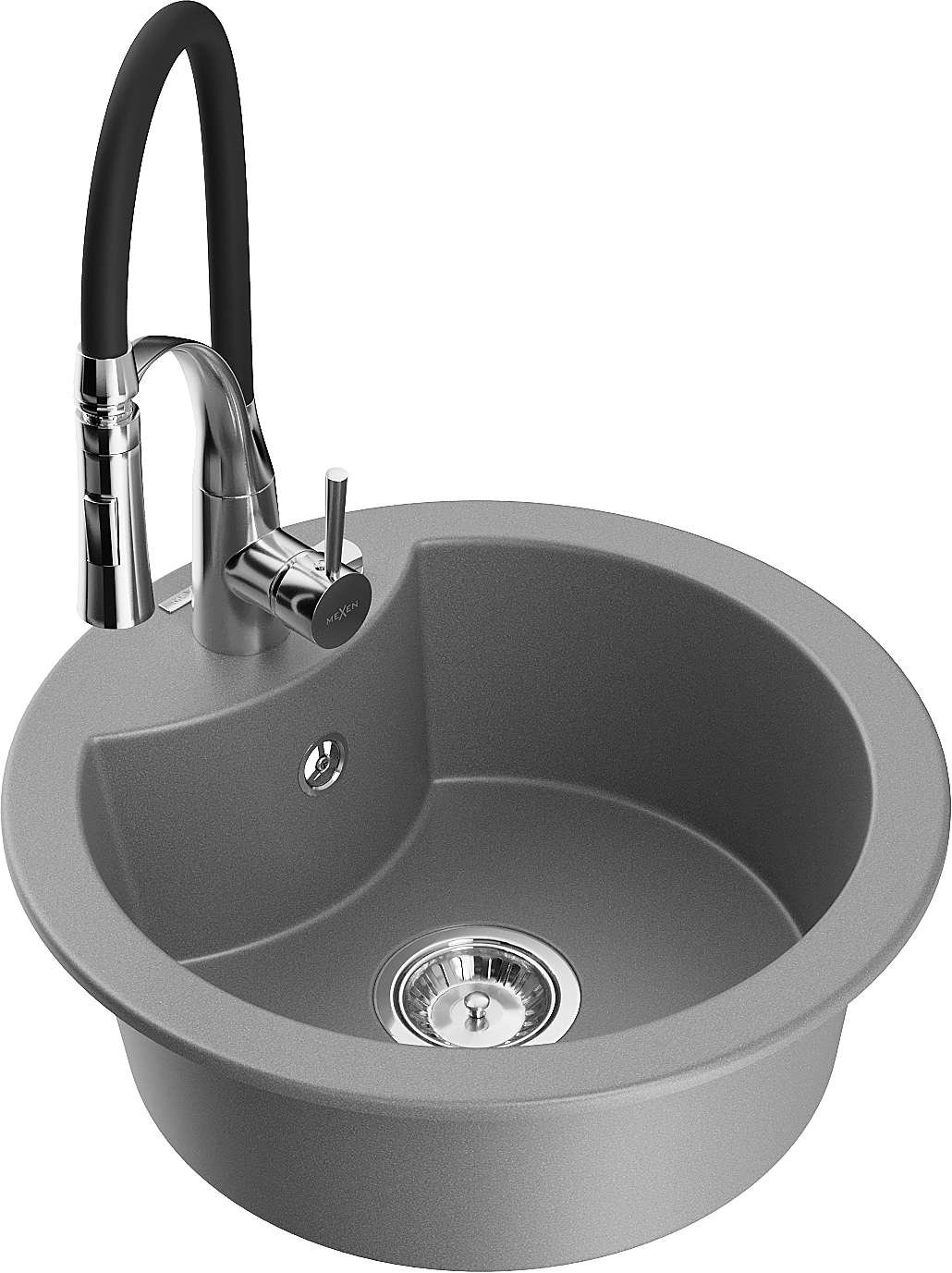 Mexen Diego granitový dřez 1-komorový s kuchyňskou baterií Aster, šedý - 6512-71-73450-07