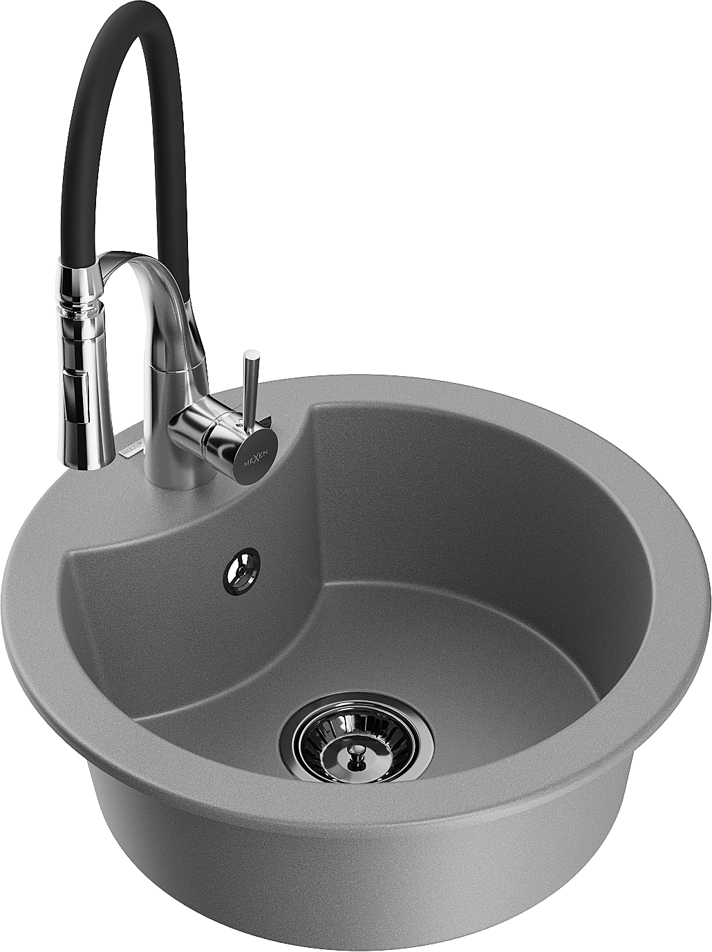 • Mexen Diego granitový dřez 1-komorový s kuchyňskou baterií Aster, šedý - 6512-71-73450-07-B