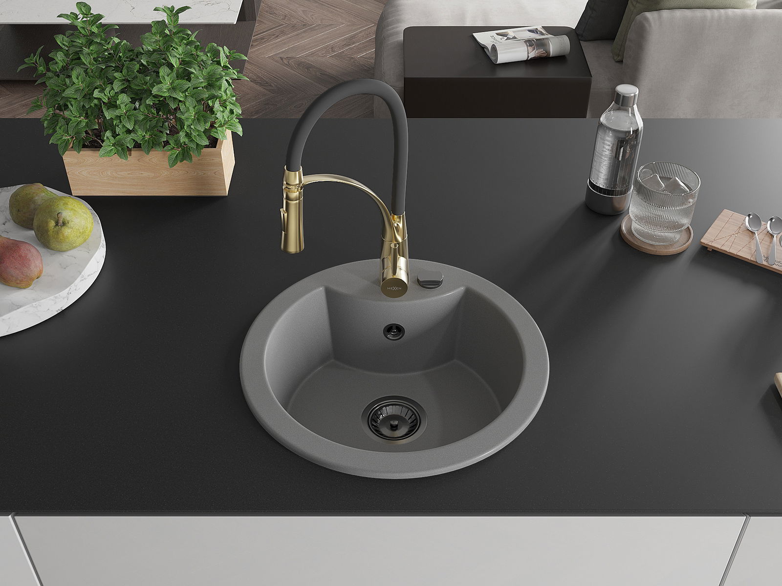 Dřez byl vyroben z vysoce kvalitního granitu. Představuje elegantní a především praktický doplněk každé kuchyně, bez ohledu na její styl. Vysoká kvalita a trvanlivost granitu zajišťují dlouholeté používání.