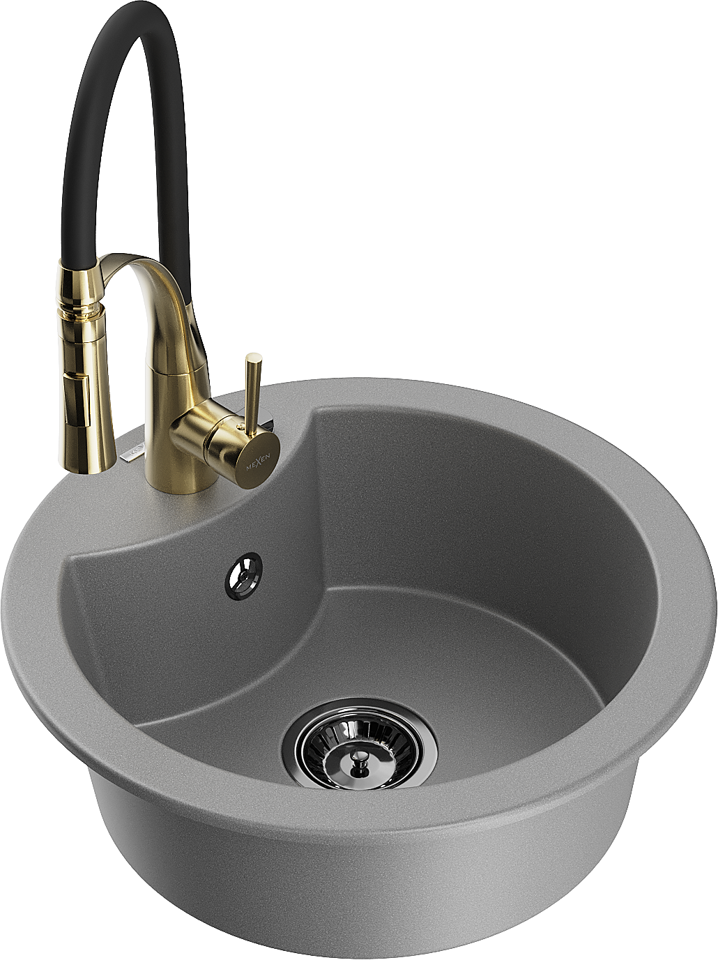 Mexen Diego granitový dřez 1-komorový s kuchyňskou baterií Aster, šedý - 6512-71-73450-57-B