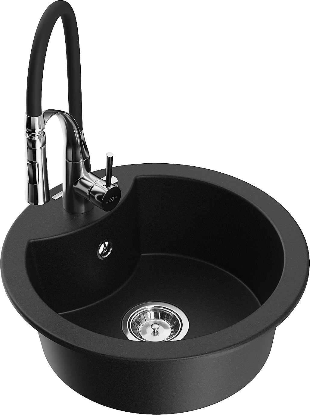 Mexen Diego granitový dřez 1-komorový s kuchyňskou baterií Aster, černý - 6512-77-73450-07