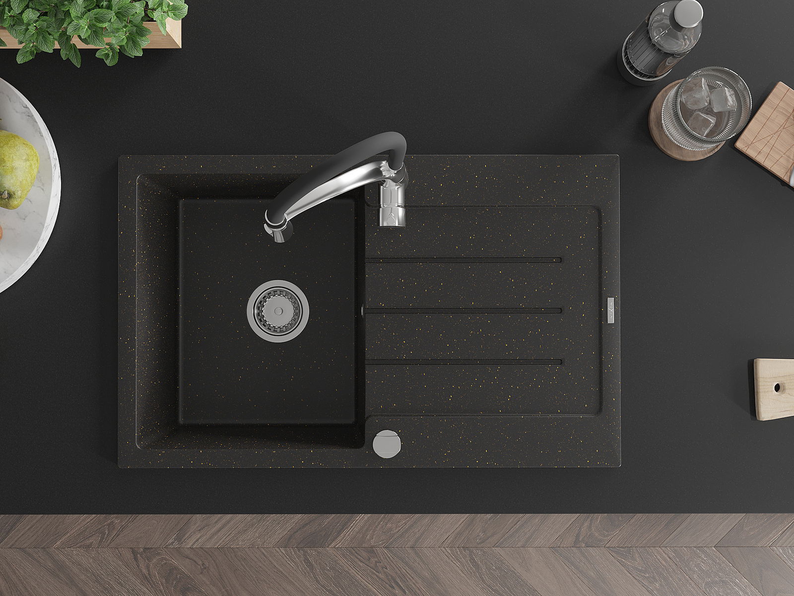 Dřez byl vyroben z vysoce kvalitního granitu. Představuje elegantní a především praktický doplněk každé kuchyně, bez ohledu na její styl. Vysoká kvalita a trvanlivost granitu zajišťují dlouholeté používání.