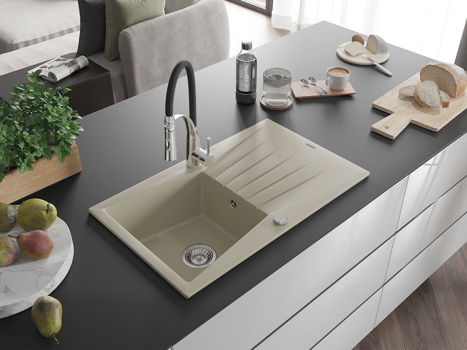 Dřez byl vyroben z vysoce kvalitního granitu. Představuje elegantní a především praktický doplněk každé kuchyně, bez ohledu na její styl. Vysoká kvalita a trvanlivost granitu zajišťují dlouholeté používání.