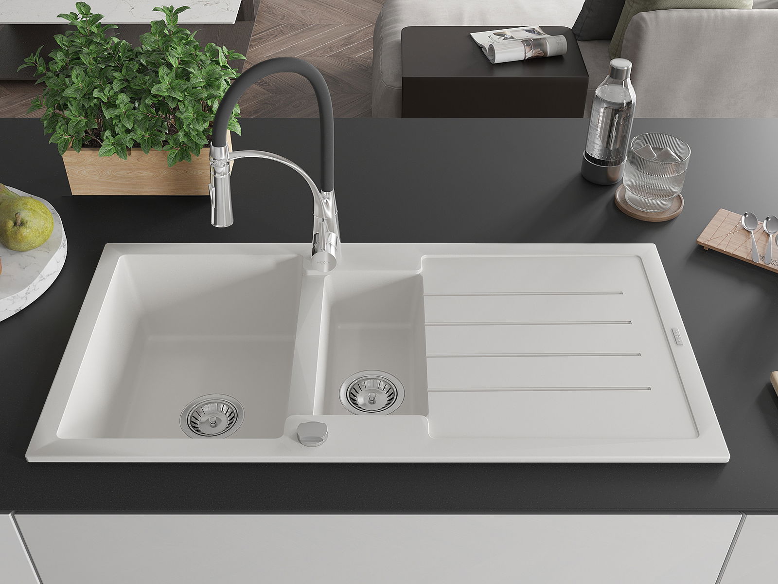 Dřez byl vyroben z vysoce kvalitního granitu. Představuje elegantní a především praktický doplněk každé kuchyně, bez ohledu na její styl. Vysoká kvalita a trvanlivost granitu zajišťují dlouholeté používání.