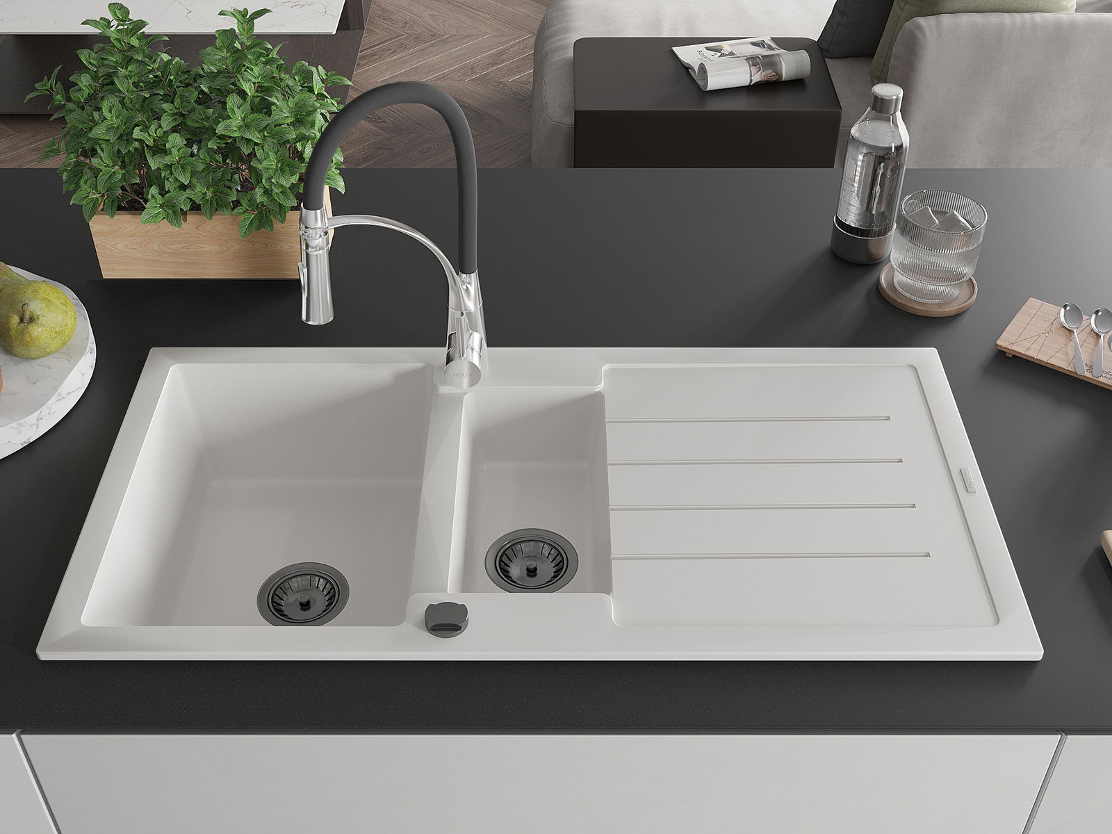 Dřez byl vyroben z vysoce kvalitního granitu. Představuje elegantní a především praktický doplněk každé kuchyně, bez ohledu na její styl. Vysoká kvalita a trvanlivost granitu zajišťují dlouholeté používání.