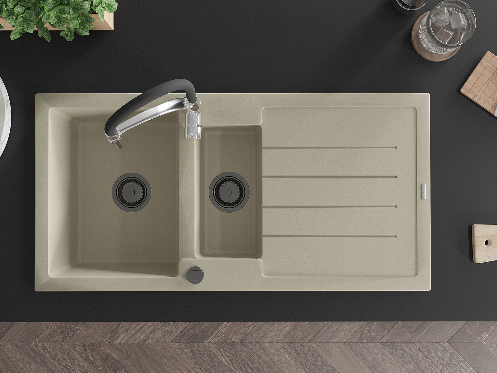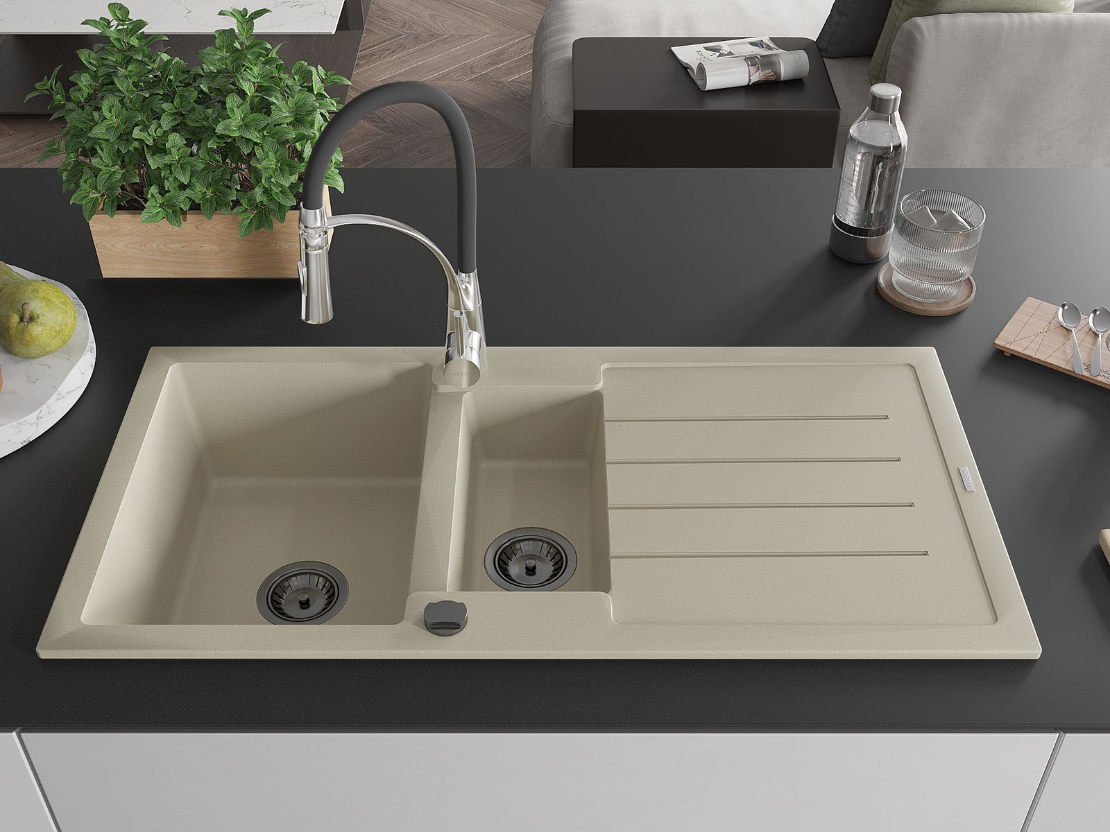Dřez byl vyroben z vysoce kvalitního granitu. Představuje elegantní a především praktický doplněk každé kuchyně, bez ohledu na její styl. Vysoká kvalita a trvanlivost granitu zajišťují dlouholeté používání.