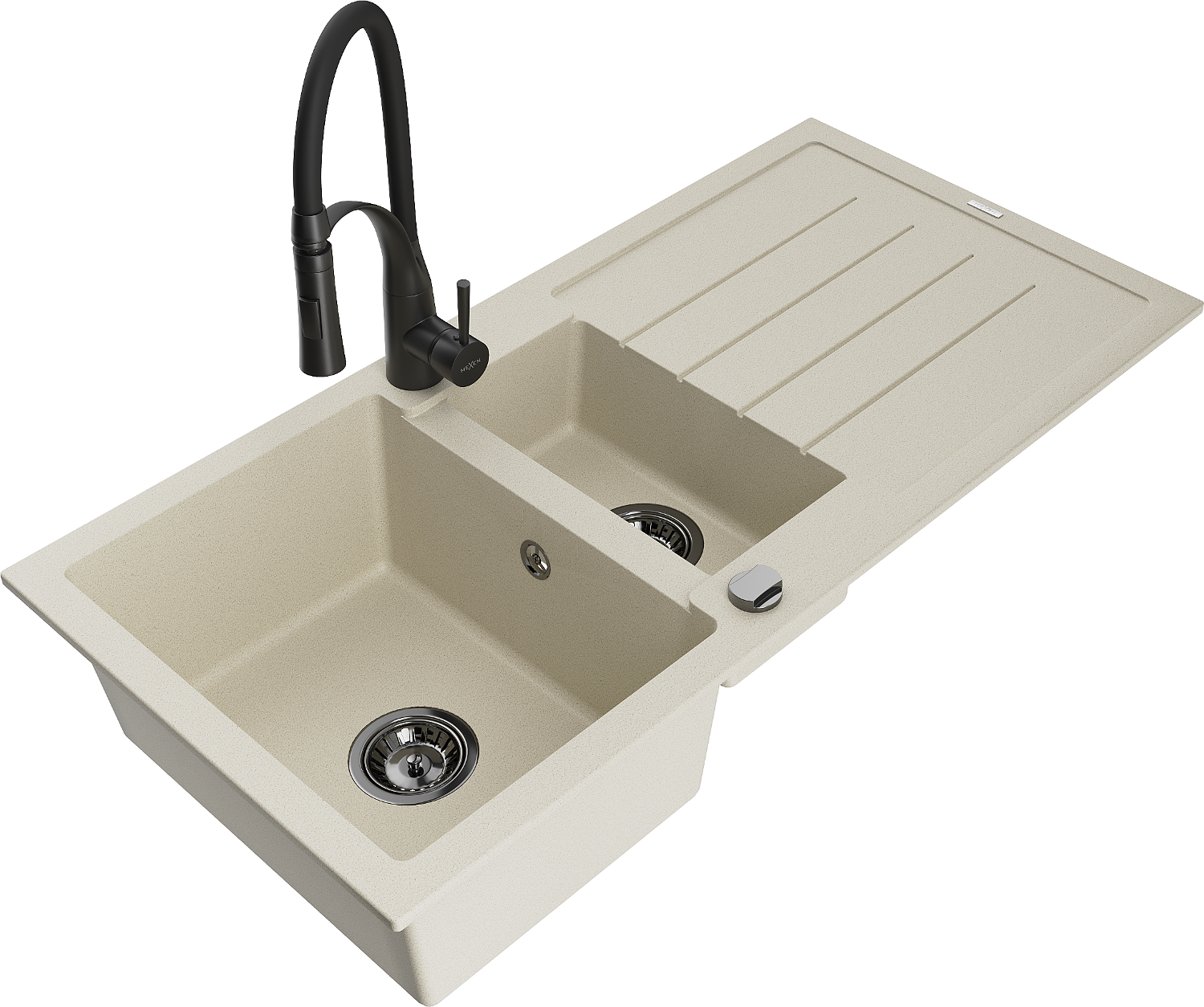 Mexen Andres granitový dřez 1,5-komorový s odkapávačem a kuchyňskou baterií Aster, béžový - 6515-69-73450-70-B
