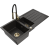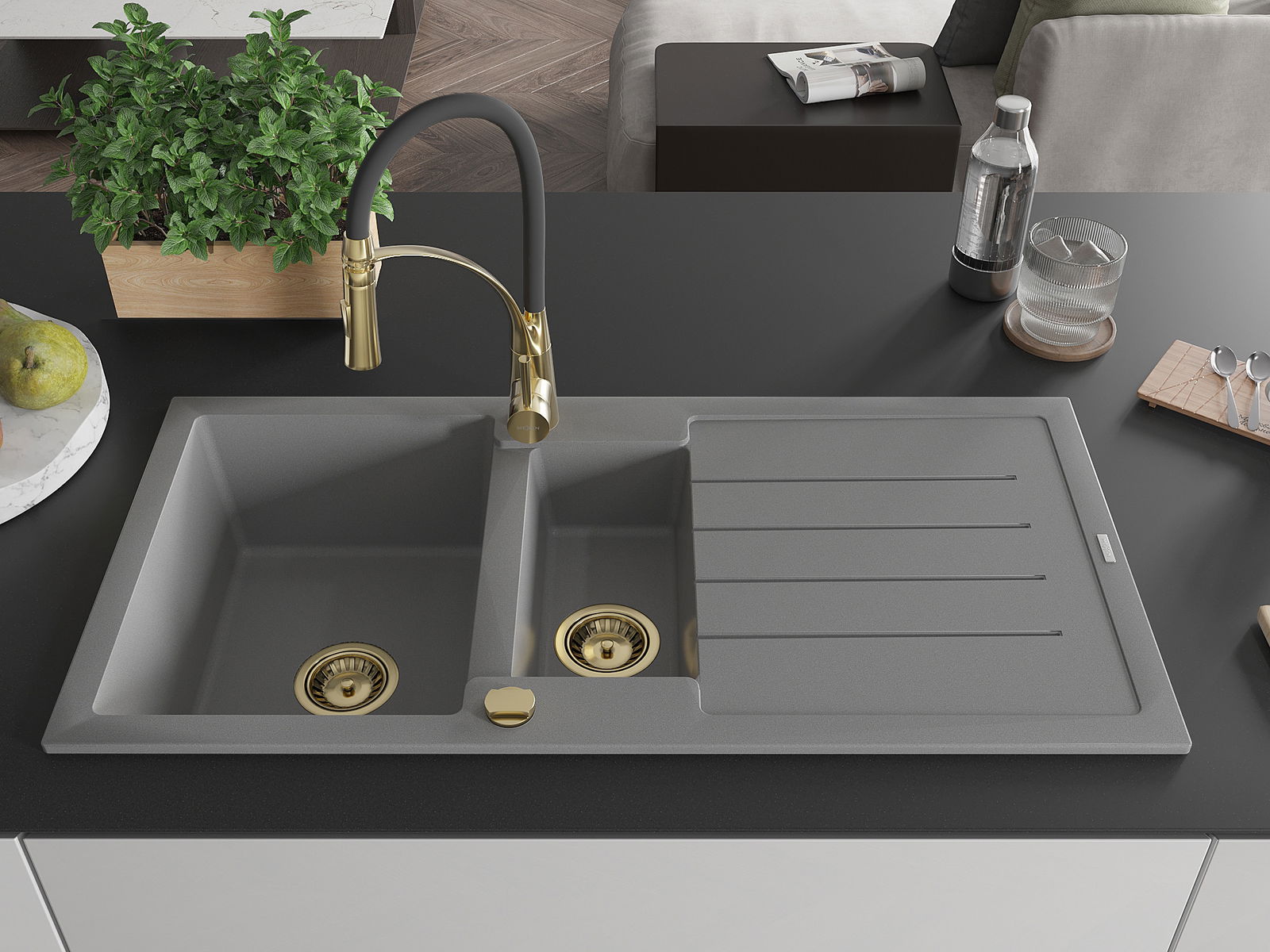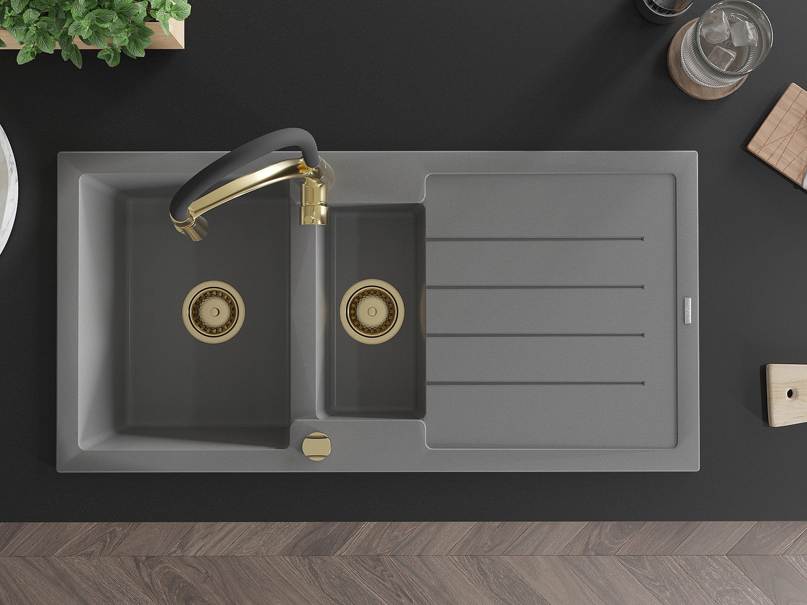 Mexen Andres granitový dřez 1,5-komorový s odkapávačem a kuchyňskou baterií Aster, šedý - 6515-71-73450-57-G