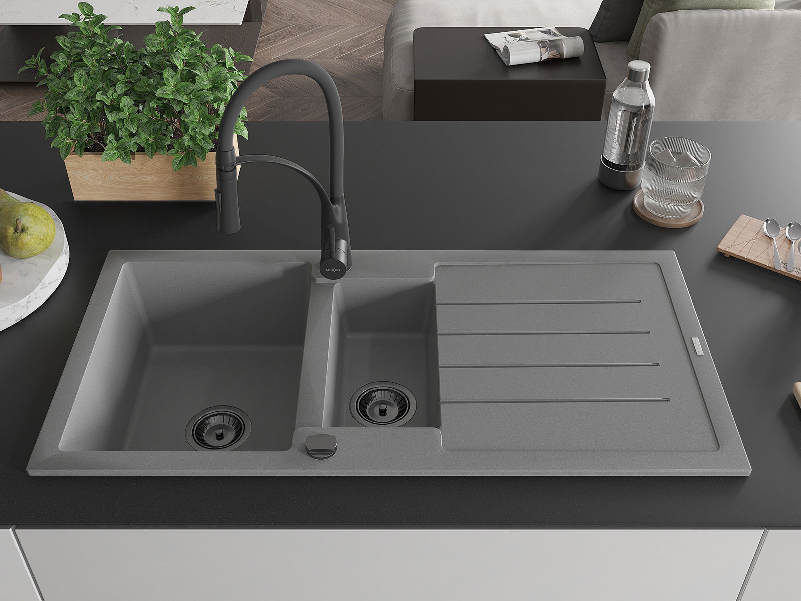 Dřez byl vyroben z vysoce kvalitního granitu. Představuje elegantní a především praktický doplněk každé kuchyně, bez ohledu na její styl. Vysoká kvalita a trvanlivost granitu zajišťují dlouholeté používání.