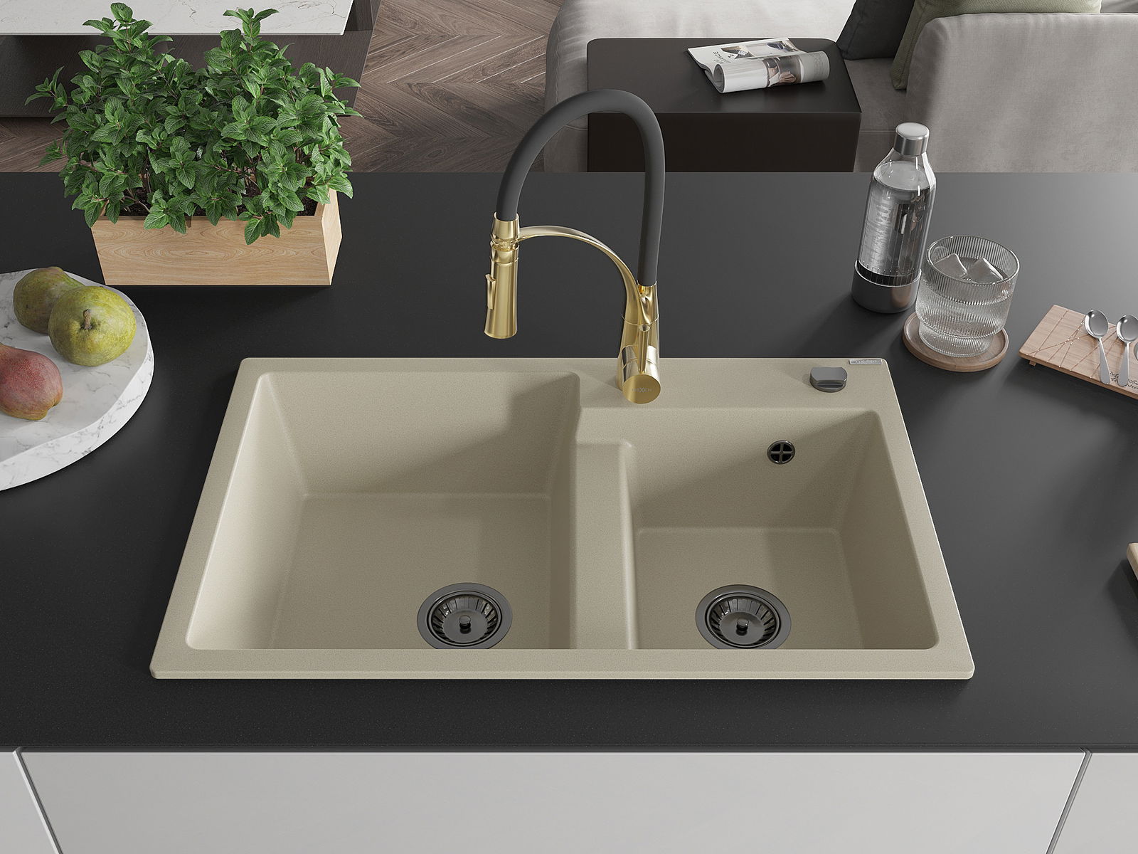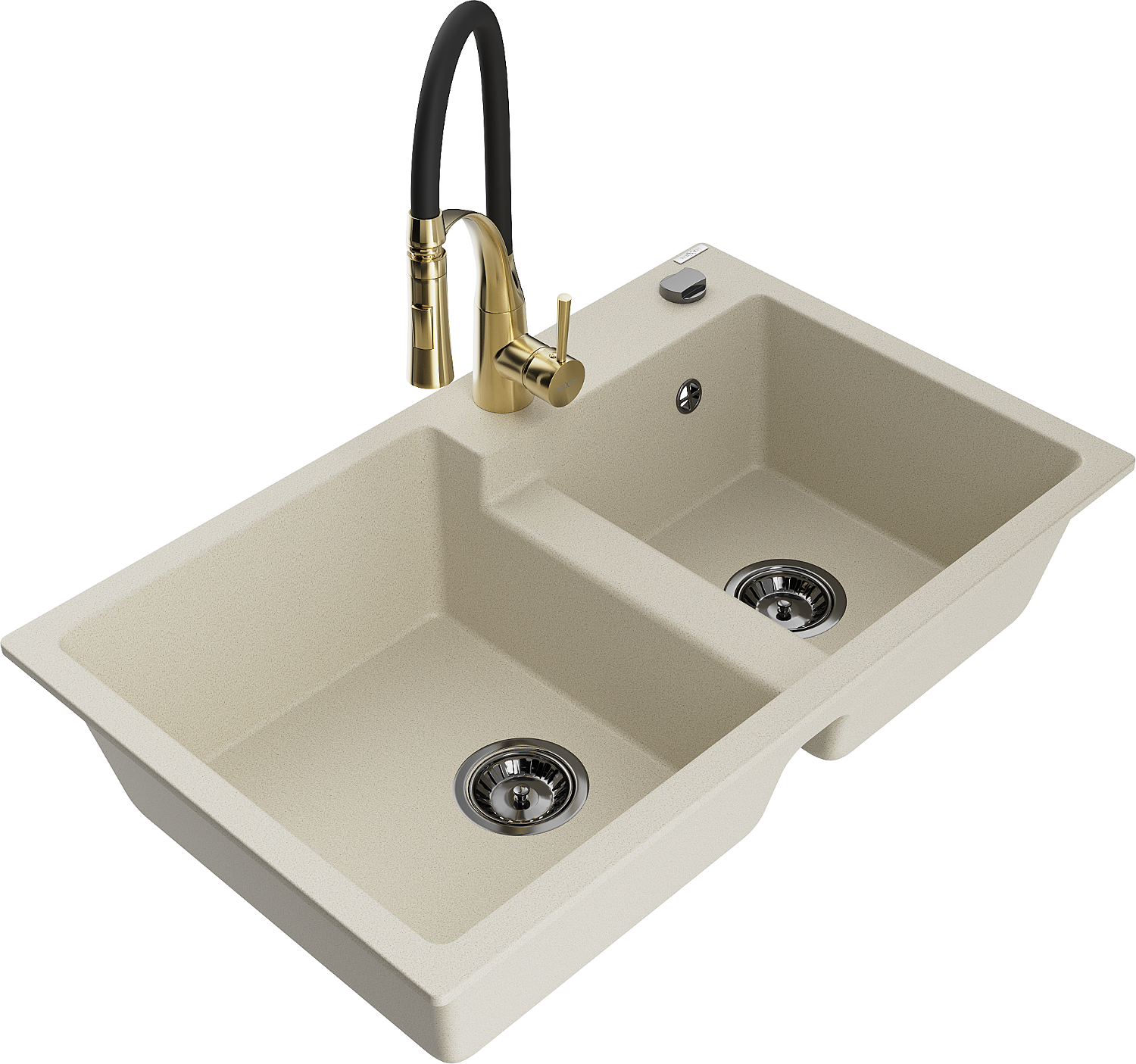 Mexen Tomas granitový dřez 2-komorový s kuchyňskou baterií Aster, béžový - 6516-69-73450-57-B